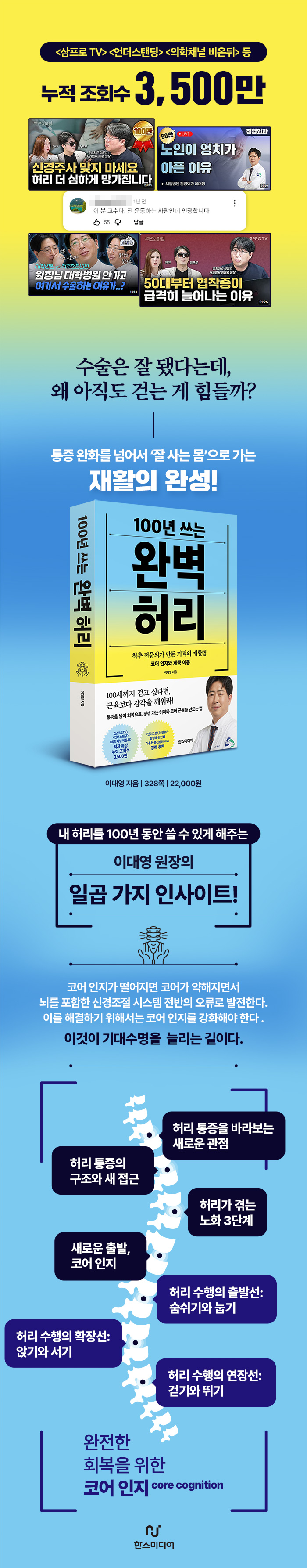 Ç㸮 ÅëÁõÀº Çö´ëÀÎÀÇ ¼÷¸í°úµµ °°´Ù. Àü ¼¼°è ¼ºÀÎÀÇ 80%°¡ Æò»ý ÇÑ ¹ø ÀÌ»óÀº °æÇèÇϸç, ±¹³»¿¡¼µµ ±¹¹Î ³× ¸í Áß ÇÑ »ç¶÷Àº ôÃß ÁúȯÀ¸·Î °íÅë¹Þ°í ÀÖ´Ù. ¿ì¸®´Â ÅëÁõÀÌ »ý±â¸é ´çÀå ÁøÅëÁ¦¸¦ ã°Å³ª ¼ö¼ú´ë¿¡ ¿À¸£Áö¸¸, Á¤ÀÛ ¡®ÅëÁõÀÌ »ç¶óÁö´Â °Í¡¯°ú ¡®¸öÀÌ È¸º¹µÇ´Â °Í¡¯ÀÌ ÀüÇô º°°³ÀÇ ¹®Á¦¶ó´Â °ÍÀ» ¾Æ´Â »ç¶÷Àº ¸¹Áö ¾Ê´Ù. ÀÌ Ã¥ ¡º100³â ¾²´Â ¿Ïº® Ç㸮¡»ÀÇ ÀúÀÚ À̴뿵 ¿øÀåÀº ¼¼°è ÃÖÃÊ·Î »À¸¦ ±ðÁö ¾Ê°í ½Å°æ ¾Ð¹ÚÀ» ÇØ¼ÒÇÏ´Â ¡®°ñÀýÁ¦ ¾ø´Â °¨¾Ð¼ú(NOLD)¡¯À» ¼º°ø½ÃŲ ôÃß ¼ö¼ú Àü¹®°¡´Ù. ¼ö¼úÀÌ ¿Ïº®ÇßÀ½¿¡µµ Á¦´ë·Î °ÈÁö ¸øÇϴ ȯÀÚµéÀ» º¸¸ç Çö´ë ÀÇÇÐÀÇ ÇѰ踦 ü°¨ÇÑ ±×´Â ±×¿¡ ´ëÇÑ ´äÀ» ã±â À§ÇØ Á¤Çü¿Ü°úÇÐÀ» ³Ñ¾î ³ú½Å°æ°úÇаú ÀçȰÀÇÇÐÀ» ´Ù½Ã °øºÎÇß°í, ȸº¹ÀÇ ÇÙ½ÉÀÌ ±ÙÀ° °È°¡ ¾Æ´Ñ ¡®ÄÚ¾î ÀÎÁö(Core Cognition)¡¯¿¡ ÀÖÀ½À» ¾Ë°Ô µÇ¾ú´Ù. ´Ü¼øÈ÷ ¾ÆÇ ºÎÀ§¸¦ °íÄ¡´Â ÀÇÇп¡¼ ¹þ¾î³ª, ¼û½¬±â¿Í ´¯±âºÎÅÍ ¾É±â, ¼±â, ±×¸®°í ÃÖÁ¾ ´Ü°èÀÎ ¡®Å丣¼Ò °È±â¡¯¿Í ¡®½½·Î¿ì ·¯´×¡¯±îÁö ÀÏ»óÀÇ ¸ðµç ¿òÁ÷ÀÓÀ» ôÃß ¾ÈÁ¤È °úÁ¤À¸·Î ¹Ù²Ù´Â ±¸Ã¼ÀûÀÎ ¹æ¹ý·ÐÀ» Á¦½ÃÇÏ´Â ÀÌ Ã¥Àº ¼ö¼ú ÈÄ ÀçȰÀÌ ÇÊ¿äÇÑ È¯ÀÚºÎÅÍ ¸¸¼º ÅëÁõ¿¡ ½Ã´Þ¸®´Â Á÷ÀåÀαîÁö, 100³â µ¿¾È ³ª¸¦ ÁöÅÊÇØ ÁÙ ¿Ïº®ÇÑ Ç㸮¸¦ ¸¸µå´Â °¡Àå °úÇÐÀûÀÎ ±æÀâÀ̰¡ µÇ¾îÁÙ °ÍÀÌ´Ù.