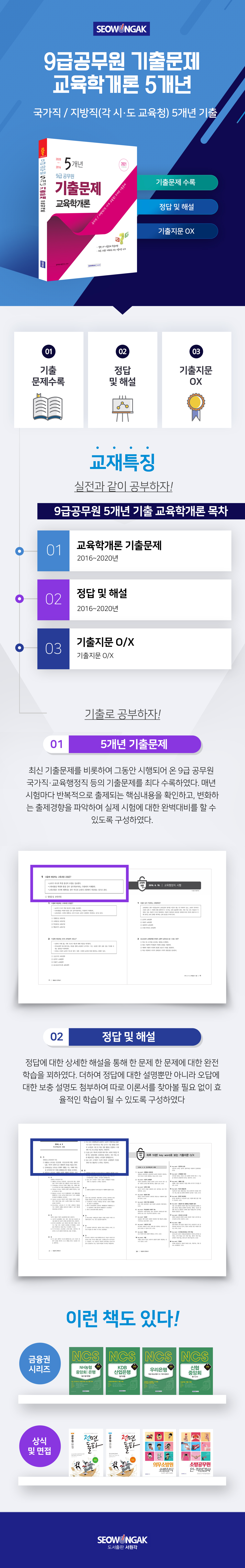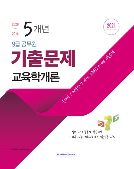 ÃâÆÇ»ç ¼Æòº»¼´Â 2021³â 9±Þ ±³À°ÇàÁ¤Á÷ ½ÃÇèÀ» ´ëºñÇϱâ À§ÇÑ ±âÃâ¹®Á¦ÁýÀ¸·Î, ±³À°Çа³·ÐÀÇ ±âÃâ¹®Á¦¸¦ ¼ö·ÏÇϰí ÀÖ´Ù. 2016³âºÎÅÍ 2020³â ÃֽбâÃâ¹®Á¦±îÁö ÃÑ 5°³³âÀÇ ±âÃâ¹®Á¦¿Í »ó¼¼ÇÑ ÇØ¼³À» ÇÑ ±Ç¿¡ ´ã¾Ò´Ù. 5³â°£ÀÇ ±âÃâ¹®Á¦¸¦ ÅëÇØ ±³À°Çа³·ÐÀÇ ÃֽбâÃâ°æÇâÀ» ÆÄ¾ÇÇÏ¿© º¸´Ù È¿À²ÀûÀÎ ÇнÀ ¹æÇâÀ» Àâ¾Æ°¥ ¼ö ÀÖ´Ù.