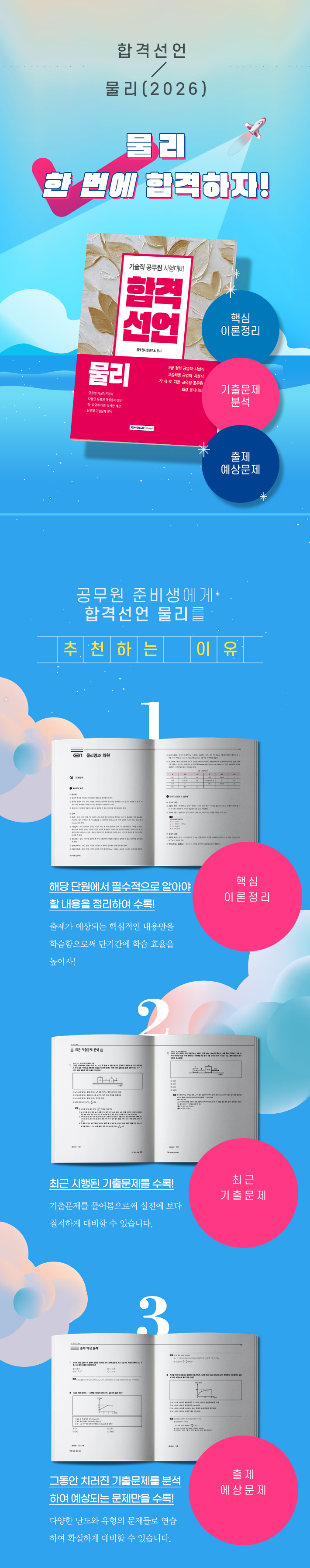 ³ÐÀº ¹üÀ§ÀÇ ¹°¸® °ú¸ñ¿¡ ´ëÇØ ü°èÀûÀ¸·Î ´Ü¿øÀ» ±¸ºÐÇÑ ÈÄ, ÇØ´ç ´Ü¿ø¿¡¼ ÇʼöÀûÀ¸·Î ¾Ë¾Æ¾ß ÇÒ ÇÙ½É À̷и¸À» ±ò²ûÇÏ°Ô Á¤¸®ÇÏ¿© ¼öÇè»ýÀÇ ÇнÀ È¿À²¼ºÀ» ³ô¿´°í, °¢ ´Ü¿øº°·Î ÃֽбâÃâ¹®Á¦¸¦ ÇÔ²² ±¸¼ºÇÏ¿© ½ÇÁ¦ ½ÃÇè¿¡ ¹®Á¦°¡ ¾î¶² À¯ÇüÀ¸·Î ÃâÁ¦µÇ´ÂÁö, ¾î¶² ½ÄÀ¸·Î ¹®Á¦¸¦ Ç®¾î¾ß ÇÏ´ÂÁö µî ½ÃÇè¿¡ ´ëÇÑ °¨À» ÀÍÈú ¼ö ÀÖµµ·Ï ÇÏ¿´´Ù. ¶Ç ÃâÁ¦°¡ ¿¹»óµÇ´Â ¹®Á¦¸¦ ´Ù¼ö ´ã¾Æ ÇнÀÇÑ ÀÌ·ÐÀ» ¹®Á¦ Ç®ÀÌ¿¡ Àû¿ëÇØ º¸´Â µî ¹Ýº¹ÇнÀÀ» ÇÒ ¼ö ÀÖµµ·Ï ÇÏ¿´À¸¸ç, ¸Å ¹®Á¦¸¶´Ù »ó¼¼ÇÑ ÇØ¼³À» ´Þ¾Æ ¹®Á¦ Ç®À̸¸À¸·Îµµ ±âÃÊ, ½ÉÈ ÇнÀÀÌ °¡´ÉÇϵµ·Ï ÇÏ¿´´Ù. |