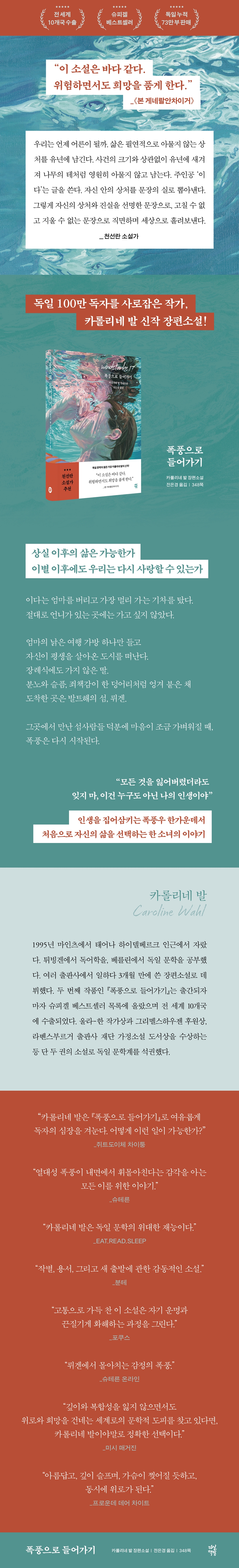 ´Ü µÎ ÆíÀÇ ÀåÆí¼Ò¼³·Î µ¶ÀÏ ¹®´Ü¿¡¼ °¡Àå ÁÖ¸ñ¹Þ´Â ÀÛ°¡°¡ µÈ Ä«·Ñ¸®³× ¹ßÀÇ ½ÅÀÛ ÀåÆí¼Ò¼³ ¡ºÆøÇ³À¸·Î µé¾î°¡±â¡»°¡ µåµð¾î Çѱ¹¿¡ Ãâ°£µÇ¾ú´Ù. Ä«·Ñ¸®³× ¹ßÀº 1995³â»ýÀÇ ÀþÀº ÀÛ°¡·Î, 3ÁÖ ¸¸¿¡ ÁýÇÊÇÑ µ¥ºßÀÛÀÌ 30ÁÖ°£ º£½ºÆ®¼¿·¯ 1À§¸¦ Â÷ÁöÇÏ´Â µî ´«ºÎ½Å ¼º°ú¸¦ °ÅµÎ¸ç ´Ü¼û¿¡ µ¶ÀÏ ¹®ÇÐÀÇ ±â´ëÁÖ·Î ÀÚ¸®¸Å±èÇß´Ù. µÎ ¹øÂ° ÀåÆíÀÎ ¡ºÆøÇ³À¸·Î µé¾î°¡±â¡» ¿ª½Ã Ãâ°£ Á÷ÈÄ µ¶ÀÏ ´ëÇ¥ º£½ºÆ®¼¿·¯ Â÷Æ®ÀÎ ½´ÇÇ°Ö º£½ºÆ®¼¿·¯¿¡ ¿À¸£¸ç Å« ÈÁ¦¸¦ ¸ð¾Ò´Ù. ¡°Ã¹ Ã¥¸¸ÅÀ̳ª ÈǸ¢ÇÏ´Ù¡±(NDR) ¡°µ¥ºßÀÛÀÌ Áö³ÇØÀÇ º£½ºÆ®¼¿·¯¿´´Ù. ÈļÓÀÛ ¡ºÆøÇ³À¸·Î µé¾î°¡±â¡»·Î ±×³à´Â ´Ù½Ã Çѹø µ¶ÀÚÀÇ ½ÉÀåÀ» Á¤È®È÷ °Ü´«´Ù. ¾î¶»°Ô ÀÌ·± ÀÏÀÌ °¡´ÉÇѰ¡?¡±(ÁãÆ®µµÀÌü Â÷ÀÌÅü) ¡°´ÜÁ¶·Ó°í ¿¹Ãø °¡´ÉÇÑ µ¶ÀÏ ¹®ÇÐÀ» ±úºÎ¼ö´Â ¹Ý°¡¿î ÆÄ¿À½¡±(Ÿ°Ô½º½´ÇǰÖ)µî µ¶ÀÏ ¾ð·ÐµéÀÇ Âù»ç¸¦ ¹ÞÀº ÀÌ ¼Ò¼³Àº ÇöÀç±îÁö Àü ¼¼°è 10°³±¹¿¡ ¼öÃâµÇ°í µ¶ÀÏ¿¡¼¸¸ 73¸¸ ºÎ ÀÌ»ó ÆÇ¸ÅµÇ´Â µî ¡®Ä«·Ñ¸®³× ¹ß ½Åµå·Ò¡¯À» ¸¸µé¾î°¡°í ÀÖ´Ù.