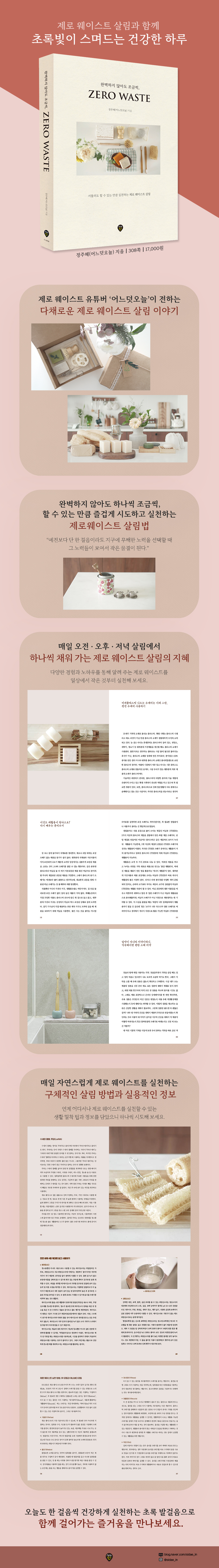 1ºÎ¿¡¼´Â ÀúÀÚ°¡ Á¦·Î ¿þÀ̽ºÆ®¿¡ óÀ½ °ü½É °¡Áö°Ô µÈ °è±âºÎÅÍ ¿©·¯ »ç¶÷ÀÌ ÇÔ²² Áö±¸¸¦ À§ÇÑ ÀÛÀº ¹°°áÀ» ¸¸µé¾î °¡ÀÚ´Â À̾߱â±îÁö, Á¦·Î ¿þÀ̽ºÆ®¿¡ ´ëÇÑ ÀúÀÚÀÇ »ý°¢°ú °æÇèÀ» ÀüÇÕ´Ï´Ù. 2ºÎ¿¡¼´Â Ä¿ÇǸ¦ ¸¶½Å ÈÄ ³ª¿À´Â Ä¿ÇÇ Â±â¸¦ ÀçȰ¿ëÇÏ´Â ¹ý, ºñ´Ò ¾ø´Â »ì¸², õ¿¬ ¼ö¼¼¹Ì ·çÆÄ »ç¿ë¹ý µî Áý¿¡¼ ½ÇõÇÒ ¼ö ÀÖ´Â Á¦·Î ¿þÀ̽ºÆ® »ì¸²¹ýÀ» ¾Ë·Á ÁÝ´Ï´Ù. 3ºÎ¿¡¼´Â õ¿¬ ¼¼Á¦ 4Á¾ »ç¿ë¹ý, ¸¶Æ®¿¡¼ ÀåÀ» º¼ ¶§ ¾²·¹±â¸¦ ÁÙÀ̱â À§ÇØ ÇÊ¿äÇÑ ÇʼöÅÛ, Á¾ÀÌ ÆÑ°ú Æ÷ÀåÁö ÀçȰ¿ë¹ý, ´Ùȸ¿ë Á¦Ç°ÀÇ Çʿ伺°ú ÈÀåǰ ÀÎÁõ ¸¶Å© µî ´Ù¾çÇÑ ½Ç»ýȰ Á¦·Î ¿þÀ̽ºÆ® »ì¸² ÆÁÀ» ¼Ò°³ÇÕ´Ï´Ù. ¸¶Áö¸·À¸·Î 4ºÎ¿¡¼´Â °íü ºñ´© ¹× °íü Ä¡¾à »ç¿ë¹ý°ú ¾ÆÀÌ¿Í ÇÔ²² Ç÷αë ÇÏ´Â ¹ý, Áß°í¸¶ÄÏ È°¿ë¹ý, ¿©ÇàÁö¿¡¼ Á¦·Î ¿þÀ̽ºÆ®¸¦ ½ÇõÇÏ´Â ¹ý µî Áý ¾È°ú ¹Û¿¡¼ ÇÔ²² ½ÇõÇÒ ¼ö ÀÖ´Â ¹æ¹ýÀ» ¾È³»ÇÕ´Ï´Ù.