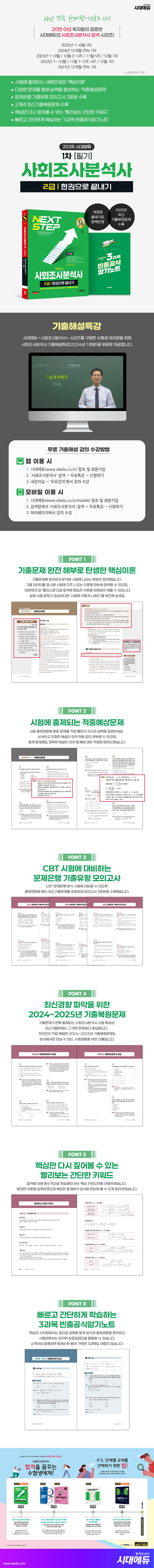 CBT ½ÃÇèÀ¸·ÎÀÇ Àüȯ°ú °ø°³µÇÁö ¾Ê´Â ±âÃâ¹®Á¦·Î ÀÎÇØ ÇнÀ¿¡ ¾î·Á¿òÀ» ´À³¢´Â µ¶ÀÚµéÀ» À§ÇØ »çȸÁ¶»çºÐ¼®»ç ¼öÇ迬±¸¼Ò¿¡¼ ½ÃÇè¹®Á¦¸¦ öÀúÈ÷ º¹¿øÇØ ¼ö·ÏÇÏ¿´½À´Ï´Ù. ÃֽűâÃâ¹®Á¦µé·Î¸¸ ±¸¼ºµÈ ¹®Á¦ÀºÇà ±âÃâÀ¯Çü ¸ðÀǰí»ç 3ȸºÐ°ú 2024~2025³â ±âÃ⺹¿ø¹®Á¦±îÁö, ²Ä²ÄÇÏ°Ô ¹®Á¦¸¦ Ç®¾îº¸¸é¼ ½ÇÀü°¨°¢À» ÀÍÇô º¸°í, º»ÀÎÀÇ Ãë¾àÁ¡À» üũÇÏ´Â ½Ã°£À» °¡Á®º¸¼¼¿ä.