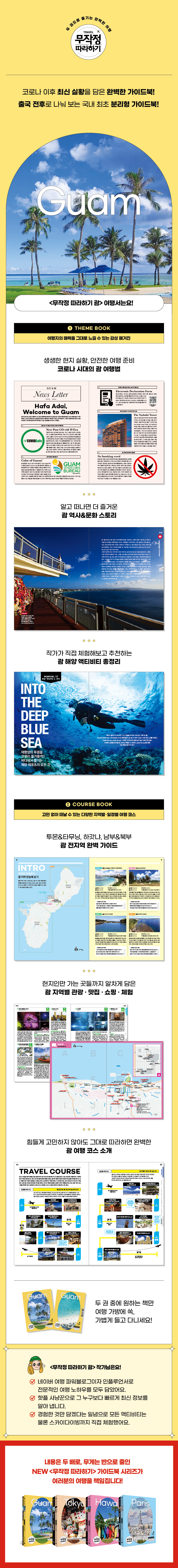¡´¹«ÀÛÁ¤ µû¶óÇϱ⠿©Çà ½Ã¸®Á´Â ¿©ÇàÁöÀÇ ¸Å·ÂÀ» ±×´ë·Î ´À³¥ ¼ö ÀÖ´Â °¨¼º ¸Å°ÅÁø ¡®1±Ç Å׸¶ºÏ¡¯, °í¹Î ¾øÀÌ ¶°³¯ ¼ö ÀÖ´Â ´Ù¾çÇÑ ÀÏÁ¤º°&Áö¿ªº° ÄÚ½º°¡ ¼Ò°³µÈ ¡®2±Ç ÄÚ½ººÏ¡¯ µÎ ±ÇÀ¸·Î ±¸¼ºµÇ¾î ÀÖ½À´Ï´Ù. 1±ÇÀº µµ½Ãº°·Î °ü±¤, À½½Ä, ¼îÇÎ, üÇè µî ³õÄ¥ ¼ö ¾ø´Â ÃֽŠ¿©Çà Å׸¶¸¦ ¸ðµÎ ¼Ò°³ÇØ ¿©ÇàÀÚÀÇ ¼±ÅÃÀÇ ÆøÀ» ³ÐÇû½À´Ï´Ù. ÀâÁö¸¦ º¸µí Àç¹ÌÀÖ°í ´Ù¾çÇÑ ÁÖÁ¦ÀÇ ÀÐÀ»°Å¸®¿Í ½Ã¿øÇÑ »çÁø ±¸¼ºÀÌ Æ¯Â¡ÀÔ´Ï´Ù. 2±ÇÀº ´Ù¾çÇÑ ÀÏÁ¤º°¤ýÅ׸¶º°¤ý¸ñÀûº° ¿©ÇàÄÚ½º¸¦ ÃÖ´Ù ±¸¼ºÇÏ¿© °í¹ÎÇÒ ÇÊ¿ä ¾øÀÌ ±×´ë·Î µû¶ó°¡¸é µÇµµ·Ï ±¸¼ºÇß½À´Ï´Ù. ¿©Çà ½Ã ÇÊ¿äÇÑ ÃÖ¼ÒÇÑÀÇ ¿©Çà Á¤º¸¸¸À» ´ã¾Æ Ã¥ÀÇ ¹«°Ô¸¦ ÁÙÀÌ°í »ó¼¼ÇÑ µµº¸ ÄÚ½º Áöµµ¿Í Áö¿ªº° ±³Åë Áöµµ°¡ »ðÀԵǾî óÀ½ ¹æ¹®ÇÏ´Â ÇØ¿Ü ¿©ÇàÁö¿¡ ´ëÇÑ ¿©ÇàÀÚµéÀÇ °ÆÁ¤À» ÁÙ¿´½À´Ï´Ù. 1±Ç¿¡¼ üũÇÑ Å׸¶¿¡ ´ëÇÑ ¿©ÇàÁö ÄÚ½º¸¦ 2±Ç¿¡¼ º¼ ¼ö ÀÖ¾î¼ µÎ ±ÇÀ» ¿¬µ¿Çؼ º¸¸é ³ª¸¸ÀÇ ¿©Çà ÄÚ½º¸¦ »õ·Ó°Ô ¼³°èÇÒ ¼ö ÀÖ½À´Ï´Ù. ¡®¹«ÀÛÁ¤ µû¶óÇϱ⠽ø®Á¸¦ ¼±ÅÃÇÏ¸é ±× Áö¿ªÀ» ´õ ½±°í ´õ °¡º±°Ô ¸¸³£ÇÒ ¼ö ÀÖ½À´Ï´Ù.