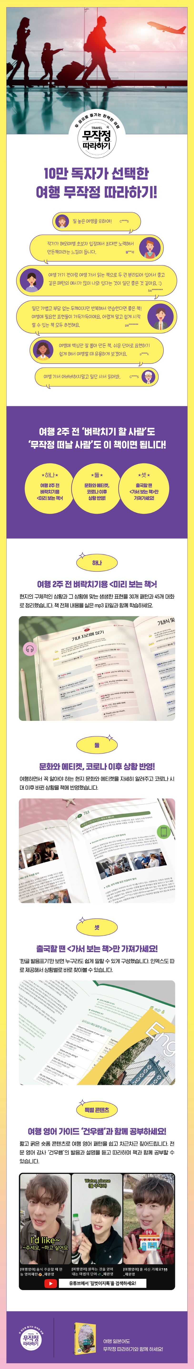 *ÀÌ Ã¥Àº 2017³â¿¡ Ãâ°£µÈ ¡¶¿©Ç࿵¾î ¹«ÀÛÁ¤ µû¶óÇϱ⡷ÀÇ °³Á¤ÆÇÀÔ´Ï´Ù. ÃÖ±ÙÀÇ ¿©Çà Á¤º¸¸¦ ¹Ý¿µÇß°í ½Ã±â¿¡ ¸Â´Â ¿¹¹®À¸·Î ±³Ã¼Çß½À´Ï´Ù.