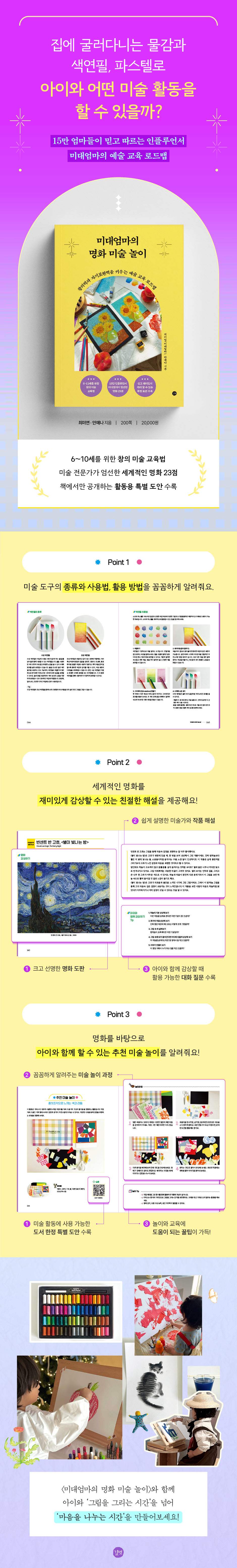 ¸ð³×, °íÈå, ¸¶Æ¼½º µî ¼¼°èÀûÀÎ ¸íÈ Áß ¹Ì´ë¾ö¸¶°¡ ¾ö¼±ÇÑ 23Á¡ÀÇ ÀÛǰÀ» ¼Ò°³Çϰí Ä£ÀýÇÏ°Ô ÇØ¼³ÇÕ´Ï´Ù. ¾ÆÀÌ¿Í ÇÔ²² ±×¸²À» °¨»óÇϸç Ȱ¡¿Í ÀÛǰ¿¡ ´ëÇØ¼ À̾߱⸦ ³ª´©´Â ½Ã°£À» °¡Á®º¸¼¼¿ä. ¹Ì¼ú Ȱµ¿µµ Áß¿äÇÏÁö¸¸ ±×¸²À» ÅëÇØ ÇÔ²² ´ëȸ¦ ³ª´©´Â °Íµµ ¾ÆÀÌÀÇ »ó»ó·Â°ú °üÂû·Â, ´Ü´ÜÇÑ ¸¶À½ÀÌ ¼ºÀåÇÏ´Â µ¥ Å« µµ¿òÀÌ µË´Ï´Ù.