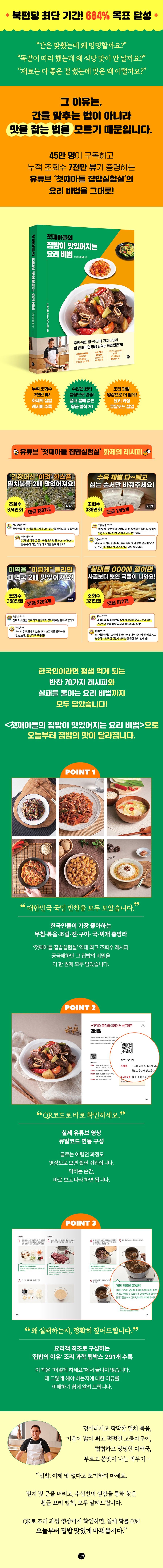 ÀÌ Ã¥Àº ¹«Ä§¡¤ººÀ½, Âò¡¤Á¶¸², ±¸ÀÌ¡¤Àü, ±¹¡¤Âî°³, ÇÑ ±×¸© ¿ä¸®¡¤º°½Ä, ±èÄ¡¡¤À徯Âî µî 6°¡Áö ÆÄÆ®·Î ±¸¼ºÇß´Ù. ´Ã ½ÇÆÐÇÏ´ø ¹®Á¦Á¡À» ¤°í, ÇÑ ²ý ´Ù¸¥ Á¶¸® ¹æ½ÄÀ» Á¦¾ÈÇØ¿Â ÀúÀÚÀÇ Ã¤³Îó·³, ÀÌ Ã¥ ¿ª½Ã °¢ Á¶¸® °úÁ¤¸¶´Ù ¡®¿Ö ÀÌ·¸°Ô ÇØ¾ß ÇÏ´ÂÁö¡¯¿¡ ´ëÇÑ ÀÌÀ¯¸¦ ´ã¾Ò´Ù. ´öºÐ¿¡ ¸·¿¬ÇÑ °¨ÀÌ ¾Æ´Ñ, ¿ø¸®¸¦ ¹ÙÅÁÀ¸·Î ÇÑ ¿ä¸®°¡ °¡´ÉÇØÁø´Ù.
