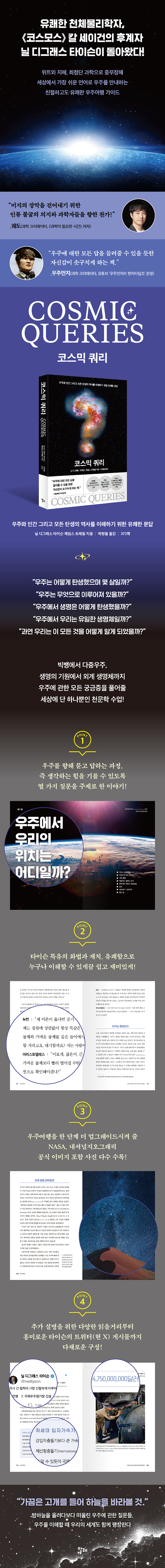 ´Ò µð±×·¡½º ŸÀ̽¼Àº º¹ÀâÇÑ °³³äÀ» ´©±¸³ª ½±°Ô ÀÌÇØÇÒ ¼ö ÀÖµµ·Ï ¼³¸íÇϴ ƯÀ¯ÀÇ È¹ý°ú ÀçÄ¡, ¸í·áÇÔÀ¸·Î ¿À·¡µµ·Ï »ç¶û¹Þ°í ÀÖ´Ù. À̹ø ½Å°£ ¡¶ÄÚ½º¹Í Äõ¸®¡·´Â ±×°¡ 2015³âºÎÅÍ ÁøÇàÇØ¿À°í ÀÖ´Â ÆÌij½ºÆ® ¡®½ºÅ¸ ÅäÅ©(Star talk)¡¯ÀÇ ¡®¿ìÁÖÀû Áú¹®¡¯À̶ó´Â ÄÚ³ÊÀÇ ÄÜÅÙÃ÷¸¦ ½ÊºÐ »ì·Á ¿ìÁÖÀÇ ½Åºñ¿Í È£±â½É¿¡ °üÇÑ ±Ã±ÝÁõ°ú ±×¿¡ °üÇÑ ´äÀ» À¯ÀÍÇϰí Â¥ÀÓ»õ ÀÖ°Ô ´ã¾Æ³Â´Ù.