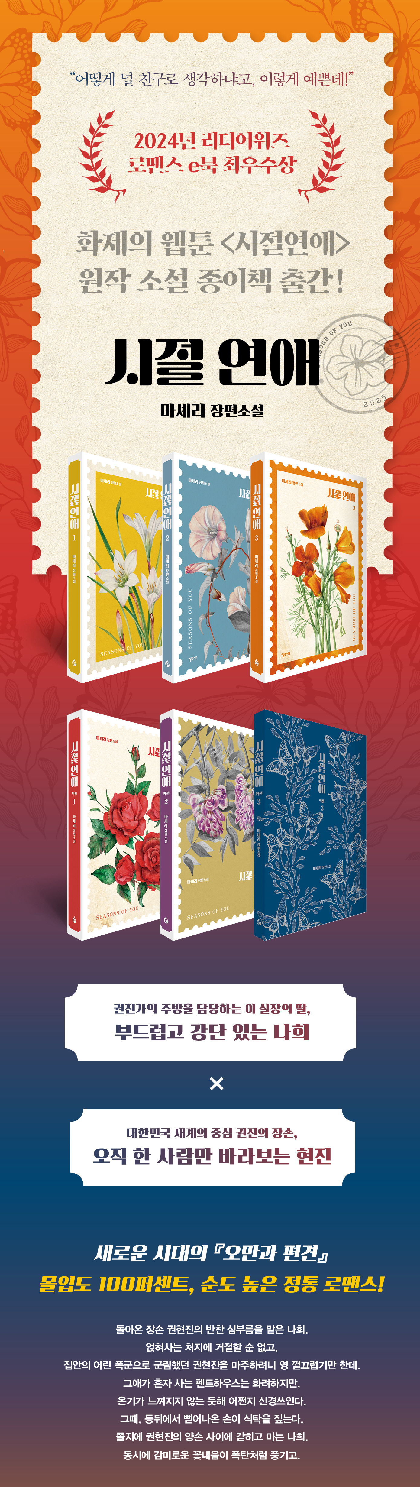 ¸®µð¾î¿öÁî ·Î¸Ç½º eºÏ ÃÖ¿ì¼ö»óÀ» ¼ö»óÇÏ¸ç »õ·Î¿î ·Î¸Ç½º ¹ÙÀ̺íÀÇ Åº»ýÀ» ¾Ë¸° ¡º½ÃÀý¿¬¾Ö¡»°¡ Á¾ÀÌÃ¥À¸·Î Ãâ°£µÇ¾ú´Ù. ¿¬Àç ´ç½Ã Å« È£ÀÀÀ» ¾ò¾ú´ø »ý»ýÇÑ Ç¥Çö°ú ÀÔüÀûÀΠij¸¯ÅÍ´Â ±×´ë·Î »ì¸®µÇ °ú°¨ÇÑ ¹¦»ç´Â »óȲ¿¡ ¸Â°Ô ´ú¾î³»¾î Á¾ÀÌÃ¥¸¸ÀÇ °¡Ä¡¸¦ ´õÇß´Ù. À̹ø¿¡ Ãâ°£µÇ´Â ´ÜÇົÀº ±âÁ¸¿¡ ¼±º¸ÀÎ ÀüÀÚÃ¥ 6±ÇÀ» ¿ÂÀüÇÑ ±¸¼ºÀ¸·Î ´ã¾Ò°í, ³»¿ë°ú ¾î¿ï¸®´Â Ç¥Áö¸¦ »ö´Ù¸£°Ô µ¡ÀÔÈ÷°í ¼¼Æ® ¹Ú½º¸¦ ¸¸µé¾î ¼ÒÀå°¡Ä¡¸¦ ³ô¿´´Ù. »õ·Î¿î ½Ã´ëÀÇ »õ·Î¿î ·Î¸Ç½º ¹ÙÀ̺íÀ̶ó ºÒ·¯µµ ¼Õ»öÀÌ ¾øÀ», Á¤Åë ·Î¸Ç½º ¼Ò¼³ ¡º½ÃÀý¿¬¾Ö¡»¸¦ Á¾ÀÌÃ¥À¸·Î ¸¸³ªº¸½Ã±â¸¦ ¹Ù¶õ´Ù.