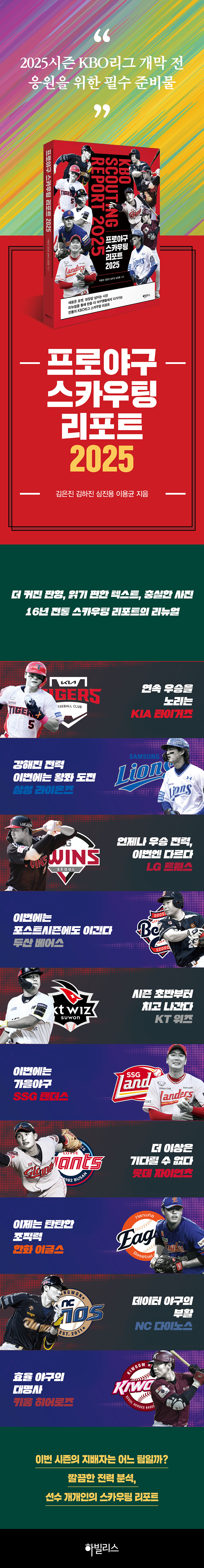 2025½ÃÁðÀ» ¸ÂÀÌÇϸç, ¡¶ÇÁ·Î¾ß±¸ ½ºÄ«¿ìÆÃ ¸®Æ÷Æ®¡·´Â ¾¦ ۰¡ ÄÇ´Ù. ±âÁ¸ Ã¥º¸´Ù ÆÇÇüÀÌ Èǽ Ä¿Á³´Ù. ±âÁ¸ ½Ã¸®Áî´Â ¾ß±¸Àå¿¡ µé°í °¡ °æ±â Áß¿¡ ÆäÀÌÁö¸¦ ÆîÃÄ ¼±¼öÀÇ ±â·ÏÀ» È®ÀÎÇϰí, °ú¿¬ ´ÙÀ½ ¼ø°£ ¾î¶² Àå¸éÀÌ ÆîÃÄÁúÁö ¿¹»óÇÏ´Â Àç¹Ì¸¦ ÁÖ·Á´Â ±âȹ Àǵµ ¼Ó¿¡¼ ¸¸µé¾îÁø Ã¥À̾ú´Ù.