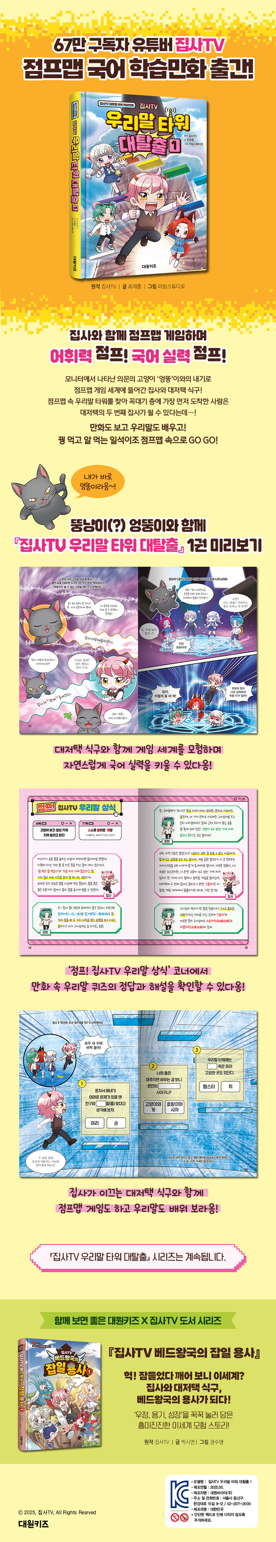 ¾î¸°ÀÌ ±¸µ¶ÀÚÀÇ »ç¶ûÀ» µë»Ò ¹Þ°í ÀÖ´Â À¯Æ©ºê ä³Î ¡´Áý»çTV¡µÀÇ Ã¹ ±¹¾î ÇнÀ¸¸È ¡ºÁý»çTV ¿ì¸®¸» Ÿ¿ö ´ëÅ»Ãâ¡» 1±ÇÀÌ Ãâ°£µÇ¾ú¾î¿ä! ÀÌ Ã¥¿¡¼ ¾Ç¸¶ Áý»ç¿Í ´ëÀúÅà ½Ä±¸ ·ÎÈñ, ¸á·Î¿ì, ¶ÇÀÌ´Â ¸ð´ÏÅÍ¿¡¼ ³ªÅ¸³ Àǹ®ÀÇ °í¾çÀÌ '¾û¶×'ÀÌ¿ÍÀÇ ³»±â·Î Á¡ÇÁ¸Ê ¼¼°è¿¡ µé¾î°¡Áö¿ä. Á¡ÇÁ¸Ê ¼Ó ¿ì¸®¸» Ÿ¿öÀÇ ²À´ë±â Ãþ¿¡ °¡Àå ¸ÕÀú ¿Ã¶ó°£ ½Ä±¸¿¡°Ô´Â ´ëÀúÅÃÀÇ µÎ ¹øÂ° Áý»ç°¡ µÉ ¼ö ÀÖ´Â ÀÚ°ÝÀÌ ÁÖ¾îÁø´ë¿ä! Æ÷ÅÐÀÇ Èû¿¡ À̲ø·Á Á¡ÇÁ¸Ê °ÔÀÓ ¼¼°è¿¡ µµÂøÇÑ À̵éÀº ¹«½Ã¹«½ÃÇÑ °ø·æÀÌ ¿ì±Û°Å¸®´Â Á¤±Û¿¡¼ ½ÃÀÛºÎÅÍ Å« À§±â¸¦ ¸Â½À´Ï´Ù. °ú¿¬ Áý»ç¿Í ´ëÀúÅà ½Ä±¸´Â Á¡ÇÁ¸Ê ¼Ó ¿ì¸®¸» Ÿ¿öÀÇ ²À´ë±â Ãþ±îÁö ¹«»çÈ÷ ¿Ã¶ó°¥ ¼ö ÀÖÀ»±î¿ä? ±×¸®°í ±×Áß °¡Àå ¸ÕÀú ²À´ë±â Ãþ¿¡ ¿Ã¶ó ´ëÀúÅÃÀÇ µÎ ¹øÂ° Áý»ç°¡ µÉ ÁÖÀΰøÀº ´©±¸Àϱî¿ä? ¾î¸°ÀÌ º£½ºÆ®¼¿·¯ÀÇ ÁÖÀΰø ¾Ç¸¶ Áý»ç°¡ À̲ô´Â ´ëÀúÅà ½Ä±¸¿Í ÇÔ²² Á¡ÇÁ¸Ê °ÔÀÓÀ» Áñ±â¸ç ½Å³ª°Ô ¿ì¸®¸» ½Ç·ÂÀ» Ű¿ö º¸¼¼¿ä. ¸¸È ¼Ó ¿ì¸®¸» ¹®Á¦ÀÇ Á¤´ä°ú ´ëÀúÅà ½Ä±¸°¡ ¾Ë·Á ÁÖ´Â ÇØ¼³·Î ±¸¼ºµÈ ¡®Á¡ÇÁ! Áý»çTV ¿ì¸®¸» »ó½Ä¡¯ ÄڳʷΠ´õ¿í ½Éµµ ÀÖ´Â ¿ì¸®¸» °øºÎ¸¦ ÇÒ ¼ö ÀÖ´ä´Ï´Ù. Ã¥ÀÇ ¸¶Áö¸· ÀåÀ» µ¤À» ¶§¸é ¾î´À»õ ¾îÈÖ·ÂÀº ¹°·Ð ±¹¾î ½Ç·ÂÀÌ ¾¦¾¦! ÀÚ¶ó ÀÖÀ» °Å¿¹¿ä.