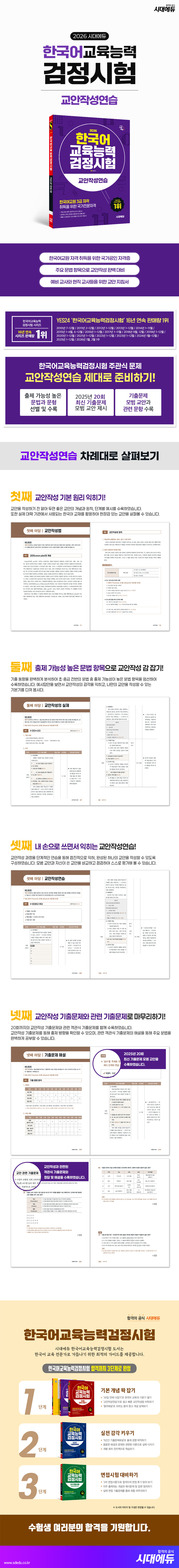 ¼ö¾÷ °æÇèÀÌ ¾ø´Â ¿¹ºñ ±³»ç´Â ¹°·Ð, °æÇèÀÌ ÀÖ´Â Çѱ¹¾î ±³»ç¶ó°í ÇØµµ ¼ö¾÷ Áغñ¸¦ À§ÇØ ±³¾ÈÀ» ÀÛ¼ºÇÏ´Â °ÍÀº ¿©ÀüÈ÷ ¾î·Á¿î ¹®Á¦ÀÔ´Ï´Ù. ÀÌ¿¡ º»¼´Â Çѱ¹¾î±³À°½Ç½À ¶§ ÀÌ·ç¾îÁö´Â ±³¾ÈÀÛ¼º°ú Çѱ¹¾î±³¿ø 3±Þ ÃëµæÀ» À§ÇÑ ±¹°¡Àü¹®ÀڰݽÃÇèÀÎ Çѱ¹¾î±³À°´É·Â°ËÁ¤½ÃÇèÀÇ ÁÖ°ü½Ä ¹®Ç×À» ´ëºñÇÒ ¼ö ÀÖµµ·Ï ±¸¼ºÇÏ¿´½À´Ï´Ù. ±³¾ÈÀÛ¼ºÀÇ °³³ä°ú ±âº» ¿¹½ÃºÎÅÍ ÃÊ¡¤Áß±Þ Àü¹Ý¿¡¼ ´Ù·ç´Â ¹®¹ý°ú ¹®Çü Áß »ç¿ë ºóµµ¿Í ³À̵µ¸¦ °í·ÁÇÏ¿©, ÁÖ¿ä Ç׸ñµéÀ» Áß½ÉÀ¸·Î ´Ü°èº° ±³¾ÈÀÛ¼ºÀ» ¿¬½ÀÇÒ ¼ö ÀÖ´Â ¹®Á¦µéÀÌ ¼ö·ÏµÇ¾î ÀÖ½À´Ï´Ù. ±×¸®°í Çѱ¹¾î±³À°´É·Â°ËÁ¤½ÃÇè 20ȸ±îÁöÀÇ ÃֽбâÃâ¹®Á¦¿Í ¸ð¹ü ±³¾ÈÀ» ¼ö·ÏÇÏ¿© ±³¾ÈÀÛ¼ºÀÇ ¹æÇâÀ» Á¦½ÃÇϰí, ¿¹ºñ ±³»ç¿Í »õ³»±â ±³»ç ¸ðµÎ¿¡°Ô µµ¿òÀÌ µÇµµ·Ï ±¸¼ºÇÏ¿´½À´Ï´Ù. º»¼¸¦ ÅëÇØ ¼öÇè»ýµéÀº ÇÕ°ÝÀÇ ±â»ÝÀ» ¸Àº¼ ¼ö Àֱ⸦, »õ³»±â ±³»çµéÀº ±³¾ÈÀÛ¼º¿¡ ´ëÇÑ ¾î·Á¿òÀ» ±Øº¹ÇÏ¿© ÇÑ »Â ´õ ¼ºÀåÇÑ Çѱ¹¾î ±³¿øÀÌ µÇ±â¸¦ ±â¿øÇÕ´Ï´Ù. |