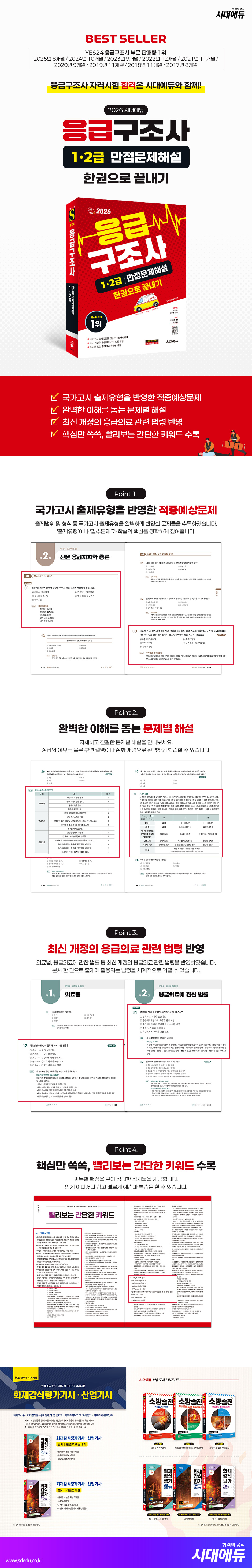 ÃâÆÇ»ç ¼Æò¡´2026 ½Ã´ë¿¡µà ÀÀ±Þ±¸Á¶»ç 1¡¤2±Þ ¸¸Á¡¹®Á¦Çؼ³ ÇѱÇÀ¸·Î ³¡³»±â¡µ´Â ÀÀ±Þ±¸Á¶»ç ÀڰݽÃÇèÀ» ÁغñÇÏ´Â ¼öÇè»ýÀÇ ½ÇÀü ´ëºñ¸¦ À§ÇÑ µµ¼ÀÔ´Ï´Ù. º»¼ ÇÑ ±ÇÀ¸·Î ¿Ïº®ÇÑ ÇнÀÀÌ °¡´ÉÇϵµ·Ï ½ÇÁ¦ ½ÃÇèÀÇ ÃâÁ¦¹üÀ§¿Í ÃâÁ¦°æÇâÀ» Àû±ØÀûÀ¸·Î ¹Ý¿µÇÏ¿´½À´Ï´Ù. À̸¦ ¹ÙÅÁÀ¸·Î ±¸¼ºÇÑ ´Ù¾çÇÑ À¯ÇüÀÇ ¹®Á¦¿Í ÀÌÇØÇϱ⠽¬¿î Ä£ÀýÇÑ ÇØ¼³ÀÌ ºü¸£°í Á¤È®ÇÑ ÇнÀÀ» µ½½À´Ï´Ù. ¶ÇÇÑ, ÀÌ·ÐÀÇ ÇÙ½ÉÀ» ü°èÀûÀ¸·Î Á¤¸®ÇÑ »¡¸®º¸´Â °£´ÜÇÑ Å°¿öµå¸¦ ÅëÇØ º»°ÝÀûÀÎ ÇнÀÀº ¹°·Ð ¿¹½À°ú º¹½À±îÁö ÇÔ²²ÇÒ ¼ö ÀÖ½À´Ï´Ù.