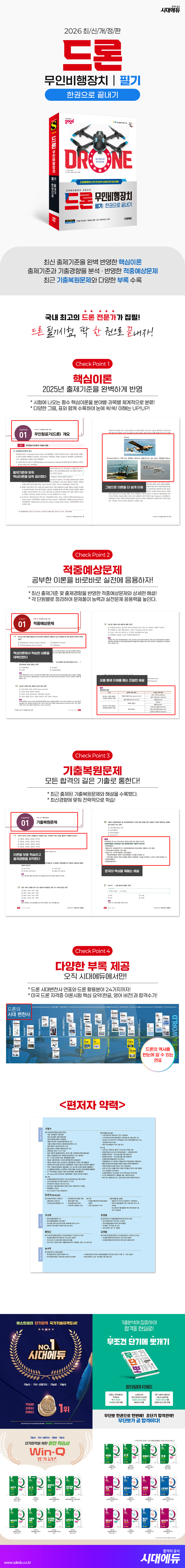 º» µµ¼´Â Çѱ¹±³Åë¾ÈÀü°ø´Ü¿¡¼ ½ÃÇàÇÏ´Â Ãʰ淮ºñÇàÀåÄ¡(µå·Ð) Á¶Á¾ÀÚ ÀÚ°ÝÁõ Çаú½ÃÇè(Çʱâ½ÃÇè) ´ëºñ¼·Î °ø´Ü¿¡¼ ¹ßÇ¥ÇÑ Çаú½ÃÇè ÃâÁ¦±âÁØÀ» ¿Ïº® ¹Ý¿µÇÏ¿´½À´Ï´Ù. ÃâÁ¦±âÁØÀ» öÀúÇÏ°Ô ºÐ¼®ÇÏ¿© Á¤¸®ÇÑ ÇÙ½ÉÀÌ·ÐÀ» ´Ü¿øº°·Î ¼ö·ÏÇÏ¿´À¸¸ç, ¿ÃÄ÷¯ ±×¸²°ú µµÇ¥¸¦ ÀÌ¿ëÇÏ¿© Áß¿äÇÑ ³»¿ëÀ» Á» ´õ ½±°Ô ÀÌÇØÇÒ ¼ö ÀÖµµ·Ï ÇÏ¿´½À´Ï´Ù. °¢ ´Ü¿øÀÌ ³¡³ª´Â ºÎºÐ¿¡ ÀûÁß¿¹»ó¹®Á¦¸¦ ¼ö·ÏÇÏ¿© ¾Õ¼ °øºÎÇÑ ÀÌ·ÐÀ» ÇÑ ¹ø ´õ üũÇϰí ÀÌÇØÇÒ ¼ö ÀÖµµ·Ï ÇÏ¿´½À´Ï´Ù. ¶ÇÇÑ ÃÖ±Ù ½ÃÇàµÈ ±âÃ⺹¿ø¹®Á¦¸¦ ¼ö·ÏÇÔÀ¸·Î½á ÃֽŠÃâÁ¦°æÇâÀ» ÆÄ¾ÇÇÒ ¼ö ÀÖµµ·Ï ÇÏ¿´½À´Ï´Ù.