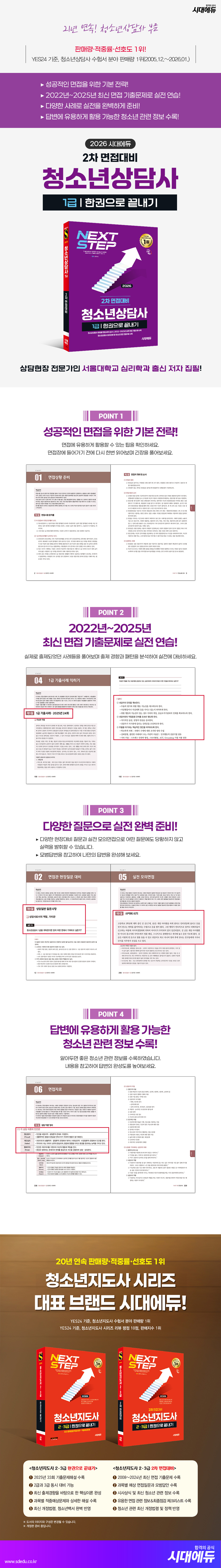 »ó¼¼À̹ÌÁö![]() ÃâÆÇ»ç ¼Æò½Ã´ë¿¡µà´Â û¼Ò³â»ó´ã»ç 1±ÞÀ» ÁغñÇÏ´Â ¼öÇè»ýµéÀÇ ÇÕ°ÝÀ» µµ¿ï ¡´2026 ½Ã´ë¿¡µà û¼Ò³â»ó´ã»ç 1±Þ 2Â÷ ¸éÁ¢´ëºñ ÇѱÇÀ¸·Î ³¡³»±â¡µ¸¦ Ãâ°£ÇÏ¿´½À´Ï´Ù. 1±Þ Çʱâ½ÃÇè ÇÕ°ÝÀÚ ¼öÇè»ýµéÀÇ ¼º¿ø¿¡ ÈûÀÔ¾î Ãâ°£ÇÏ°Ô µÈ ¡´2026 ½Ã´ë¿¡µà û¼Ò³â»ó´ã»ç 1±Þ 2Â÷ ¸éÁ¢´ëºñ ÇѱÇÀ¸·Î ³¡³»±â¡µ´Â 2Â÷ ¸éÁ¢½ÃÇè ÇÕ°ÝÀ» À§ÇÑ ÃÖÀûÀÇ Àü·«À» Á¦°øÇÏ¸ç ¸éÁ¢ Áغñ¿¡ ÇÊ¿äÇÑ ¸ðµç Á¤º¸¸¦ ÇÑ ±Ç¿¡ ´ã¾Ò½À´Ï´Ù.