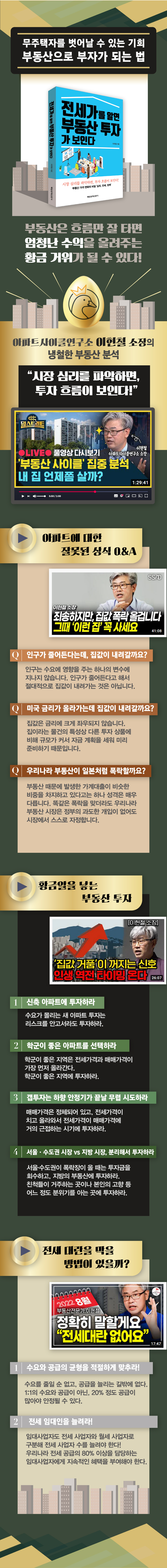 ºÎµ¿»ê¿¡ ´ëÇÑ ºÎÁ¤ÀûÀÎ ½Ã°¢¸¸À» °¡Áö°í ÀÖ¾ú±â ¶§¹®¿¡ ¹«ÁÖÅÃÀÚ¸¦ ¹þ¾î³¯ ±âȸ¸¦ °è¼ÓÇØ¼ ³õÄ¡°í ÀÖ´Ù°í »ý°¢ÇÑ´Ù. ÀÌ Ã¥ÀÌ ±×·¯ÇÑ À߸øµÈ ½Ã°¢À» °³¼±ÇØÁÖ´Â °è±â°¡ µÉ °ÍÀÌ´Ù. PART 01¿¡¼´Â ¿ì¸®³ª¶ó¿¡¸¸ ÀÖ´Ù´Â Àü¼¼Á¦µµ¿Í »ç¶÷µéÀÇ ½É¸®, Á¤ºÎ Á¤Ã¥À» Áß½ÉÀ¸·Î º¯ÇÏ´Â ¾ÆÆÄÆ® °¡°Ý¿¡ ´ëÇØ ¼³¸íÇÑ´Ù. ¶ÇÇÑ ¾ÆÆÄÆ®¿¡ ´ëÇÑ »ç¶÷µéÀÇ À߸øµÈ »ó½ÄÀ» ¹Ù·ÎÀâ°í, ÁÖÅà °¡°Ý¿¡ Å©°Ô ¿µÇâÀ» ¹ÌÄ¡´Â ¿äÀεéÀ» »ìÇÉ´Ù. PART 02¿¡¼´Â ºÎµ¿»ê ÅõÀÚ¿¡ ¼û¾î ÀÖ´Â ºñ¹ÐÀ» ¾Ë·ÁÁØ´Ù. Á¦´ë·Î ÅõÀÚÇϱâ À§ÇØ ¹Ýµå½Ã ¾Ë¾Æ¾ß ÇÒ Áö½Ä°ú Ãʺ¸ÀÚ°¡ ÇÇÇØ¾ß ÇÒ ÅõÀÚ, ±×¸®°í ¹«ÁÖÅÃÀÚµéÀÌ ±Ã±ÝÇÑ BEST9¸¦ ¼±º°ÇØ ±× ±Ã±ÝÁõÀ» ÇØ°áÇÑ´Ù.