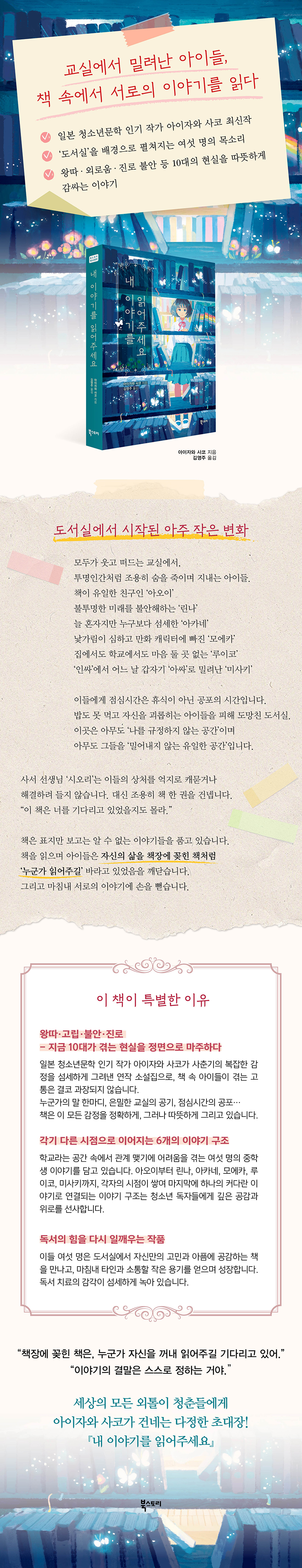 ¡º³» À̾߱⸦ ÀоîÁÖ¼¼¿ä¡»(¿øÁ¦: ?ãøªË?ªóªÀÛÎøúòµ)´Â ÀϺ» û¼Ò³â ¹®ÇÐÀÇ ´ëÇ¥ ÁÖÀÚ ¾ÆÀÌÀÚ¿Í »çÄÚÀÇ ¿¬ÀÛ ¼Ò¼³ÁýÀ¸·Î, °ü°è¿¡ ÁöÄ£ ¾ÆÀ̵éÀÌ Ã¥°ú »ç¼ ¼±»ý´ÔÀ» ÅëÇØ ÀÚÁ¸°¨À» ȸº¹ÇÏ´Â À̾߱⸦ ´ã¾Ò´Ù.
