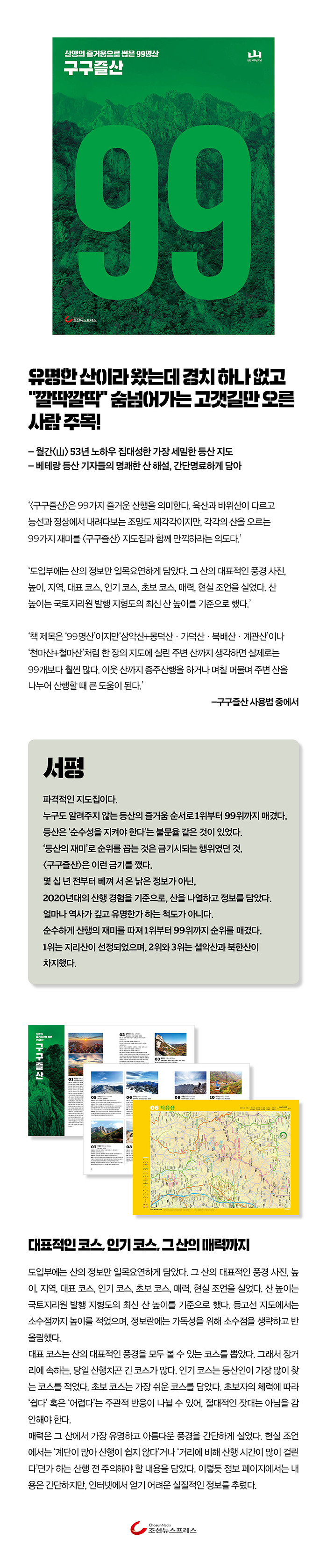 ¡®¡´±¸±¸Áñ»ê¡µÀº 99°¡Áö Áñ°Å¿î »êÇàÀ» ÀǹÌÇÑ´Ù. À°»ê°ú ¹ÙÀ§»êÀÌ ´Ù¸£°í ´É¼±°ú Á¤»ó¿¡¼ ³»·Á´Ùº¸´Â Á¶¸Áµµ Á¦°¢°¢ÀÌÁö¸¸, °¢°¢ÀÇ »êÀ» ¿À¸£´Â 99°¡Áö Àç¹Ì¸¦ ¡´±¸±¸Áñ»ê¡µ ÁöµµÁý°ú ÇÔ²² ¸¸³£Ç϶ó´Â Àǵµ´Ù.¡¯