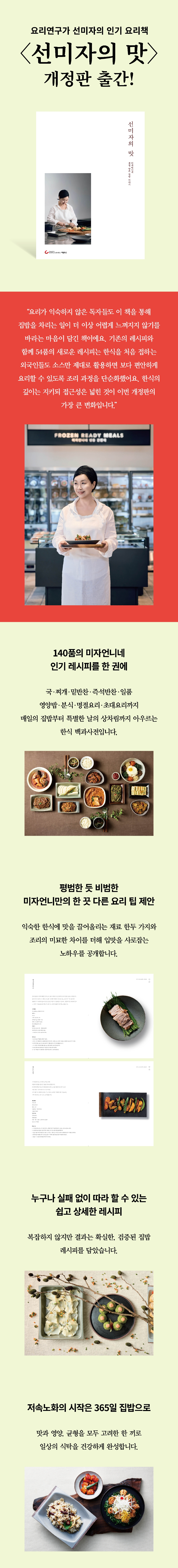 ¡´¼±¹ÌÀÚÀÇ ¸À¡µ °³Á¤ÆÇÀº °£Àå°ú °íÃßÀå¿¡ ´õÇØ ¸¼Àº ¾×Á£, ¸À°£Àå µî ÇÑ½Ä ¼Ò½º¸¦ ¿ä¸®ÀÇ Á߽ɿ¡ µÎ°í, À̸¦ Ȱ¿ëÇÑ ´Ù¾çÇÑ ¸Þ´º¸¦ ÇÑÃþ ´õ ±íÀÌ ÀÖ°Ô Á¦¾ÈÇÕ´Ï´Ù. Áý¿¡¼ ¹Ýº¹ÇØ ¸¸µé¾îµµ ºÎ´ã ¾ø°í ½ÇÆÐ È®·üÀÌ ³·Àº ·¹½ÃÇǵé·Î ±¸¼ºÇØ, ÀÏ»óÀûÀÎ Áý¹äÀº ¹°·Ð ¼Õ´Ô»ó¿¡ ¿Ã¸®±â ÁÁÀº ¿ä¸®±îÁö Æø³Ð°Ô ´ã¾Ò½À´Ï´Ù.