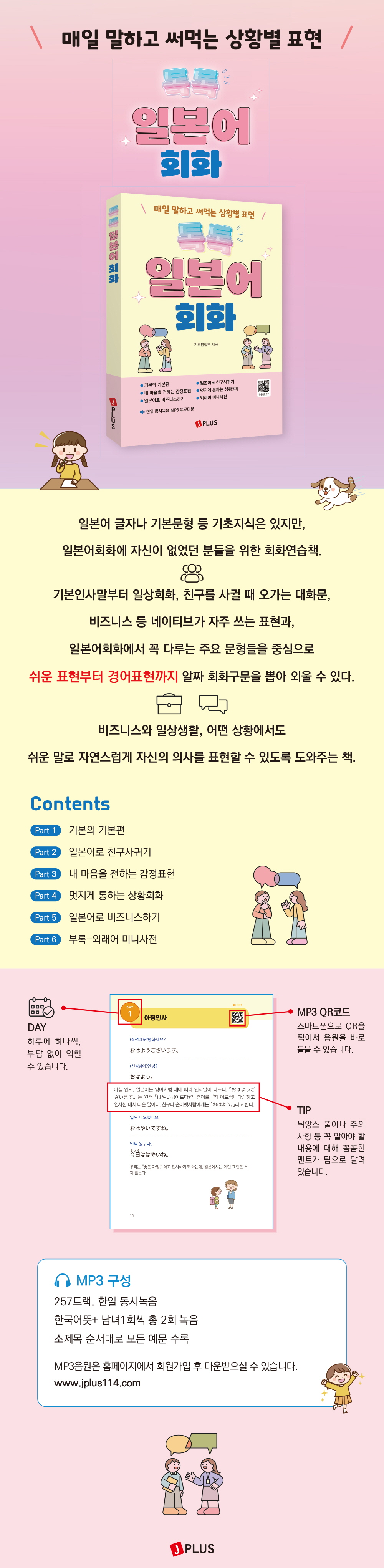 ÀϺ»¾î ±ÛÀÚ³ª ±âº»¹®Çü µî ±âÃÊÁö½ÄÀº ÀÖÁö¸¸, ÀϺ»¾îȸȿ¡ ÀÚ½ÅÀÌ ¾ø¾ú´ø ºÐµéÀ» À§ÇÑ È¸È¿¬½ÀÃ¥. ±âº»Àλ縻ºÎÅÍ ÀÏ»óȸÈ, Ä£±¸¸¦ »ç±Ð ¶§ ¿À°¡´Â ´ëȹ®, ºñÁî´Ï½º µî ³×ÀÌÆ¼ºê°¡ ÀÚÁÖ ¾²´Â Ç¥Çö°ú, ÀϺ»¾îȸȿ¡¼ ²À ´Ù·ç´Â ÁÖ¿ä ¹®ÇüµéÀ» Áß½ÉÀ¸·Î ½¬¿î Ç¥ÇöºÎÅÍ °æ¾îÇ¥Çö±îÁö ¾ËÂ¥ ȸȱ¸¹®À» »Ì¾Æ ¿Ü¿ï ¼ö ÀÖ´Ù.