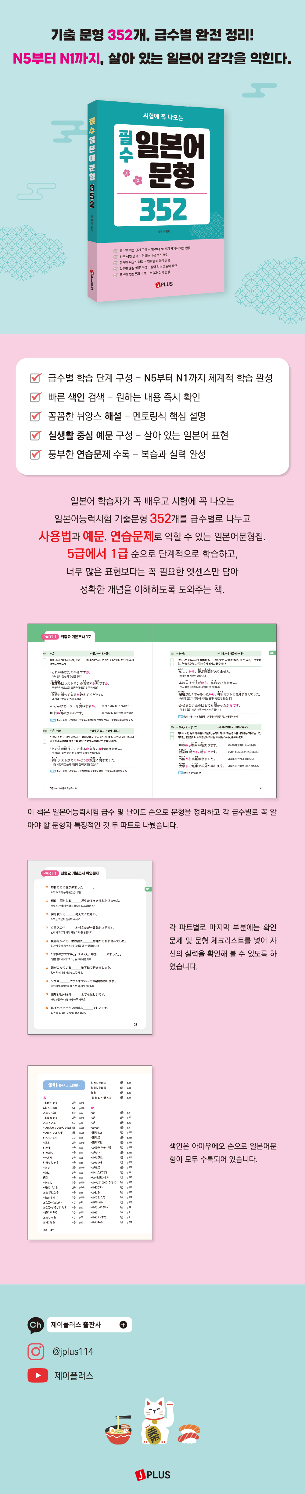 Ã¥¼Ò°³ÀϺ»¾î ÇнÀÀÚ°¡ ²À ¹è¿ì°í ½ÃÇè¿¡ ²À ³ª¿À´Â ÀϺ»¾î´É·Â½ÃÇè ±âÃâ¹®Çü 352°³¸¦ ±Þ¼öº°·Î ³ª´©°í »ç¿ë¹ý°ú ¿¹¹®, ¿¬½À¹®Á¦·Î ÀÍÈú ¼ö ÀÖ´Â ÀϺ»¾î ¹®ÇüÁý.