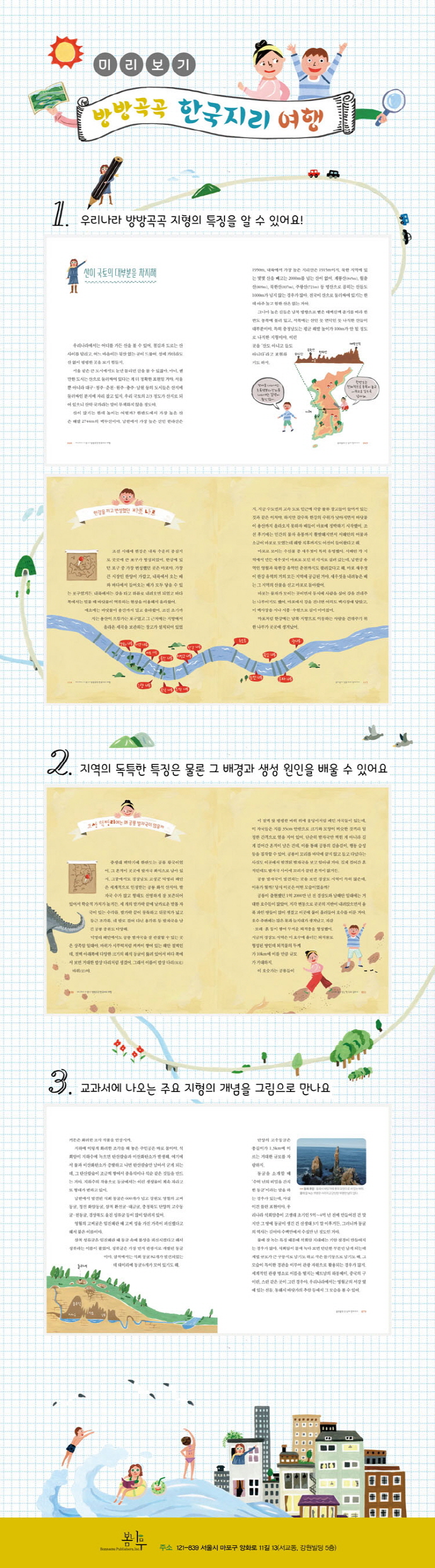 ¡¶¹æ¹æ°î°î Çѱ¹Áö¸® ¿©Çà¡·Àº ¾î¸°À̵éÀÌ ±Ã±ÝÇØÇÏ´ø Çѱ¹Áö¸®ÀÇ ¸ðµç °ÍÀ» ¾Ë·Á ÁØ´Ù. Àç¹ÌÀÖ´Â À̾߱⸦ µèµí ¼ú¼ú Àд٠º¸¸é ¾î´À»õ ±Ã±ÝÁõµµ Ç®°í Çѹݵµ ±¸¼®±¸¼® ¿©ÇàÀ» ÇÑ °Í °°Àº ±âºÐÀÌ µé °ÍÀÌ´Ù.