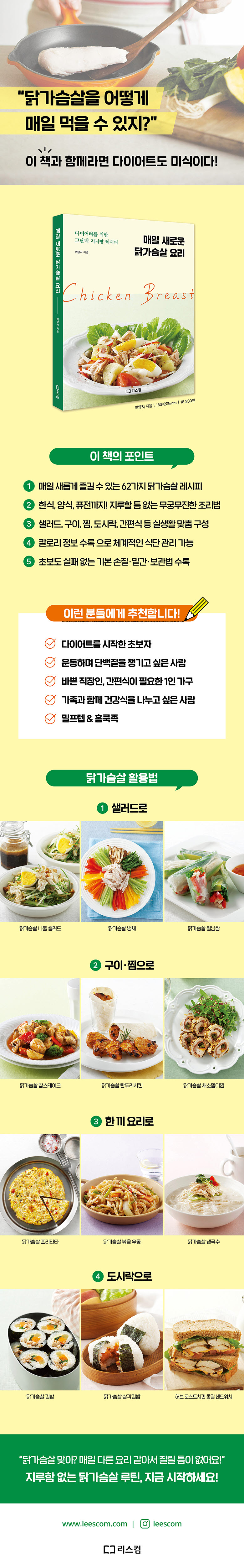 ´Ü¼øÇÑ ·¹½ÃÇǺÏÀ» ³Ñ¾î, ´ß°¡½¿»ìÀ» ´õ¿í ¸ÀÀÖ°í °Ç°ÇÏ°Ô Áñ±æ ¼ö ÀÖ´Â ¼ÕÁú°ú Á¶¸®ÀÇ ÇÙ½É ÆÁ±îÁö ²Ä²ÄÇÏ°Ô ´ã¾Ò´Ù. ½Å¼±ÇÑ ´ß°¡½¿»ìÀ» °í¸£´Â ¹ýºÎÅÍ ²®Áú°ú Áö¹æÀ» È¿°úÀûÀ¸·Î Á¦°ÅÇÏ´Â ¹æ¹ý, ¿ìÀ¯³ª Çãºê¸¦ Ȱ¿ëÇØ Àâ³»¸¦ ¾ø¾Ö´Â ºñ¹ý±îÁö, ´©±¸³ª µû¶ó ÇÒ ¼ö ÀÖµµ·Ï Ä£ÀýÇÏ°Ô ¾È³»ÇÑ´Ù.