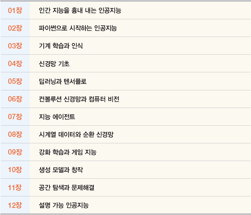 ÀΰøÁö´É ÀÌ·ÐÀ» 79°³ÀÇ ÆÄÀ̽ã ÇÁ·Î±×·¥À¸·Î ½Ç½ÀÇÏ¸ç ¹è¿ì´Â Ã¥ÀÔ´Ï´Ù. ÄÁº¼·ç¼Ç ½Å°æ¸Á, ¼øÈ¯ ½Å°æ¸Á, °È ÇнÀ µîÀÇ ÀΰøÁö´É ÇÙ½É ÀÌ·ÐÀ» ´Ù¾çÇÑ ¿¹½Ã¿Í ¼ö½Ä, ±×·¡ÇÁ¸¦ ÅëÇØ ÇнÀÇÒ ¼ö ÀÖ½À´Ï´Ù. ¶ÇÇÑ ·Îº¿ ±âÀÚ, Áý ÁöÅ´ÀÌ, ºñÆ®ÄÚÀÎ °¡°Ý ¿¹Ãø, µ¿¿ä Æí°î, ÆÐ¼Ç »ý¼º ºñÁî´Ï½º, ¿À¸ñ ÇÁ·Î±×·¥ ½Ç½ÀÀ¸·Î ÀΰøÁö´É ±¸Çö ´É·ÂÀ» źźÇÏ°Ô ±â¸¦ ¼ö ÀÖ½À´Ï´Ù.