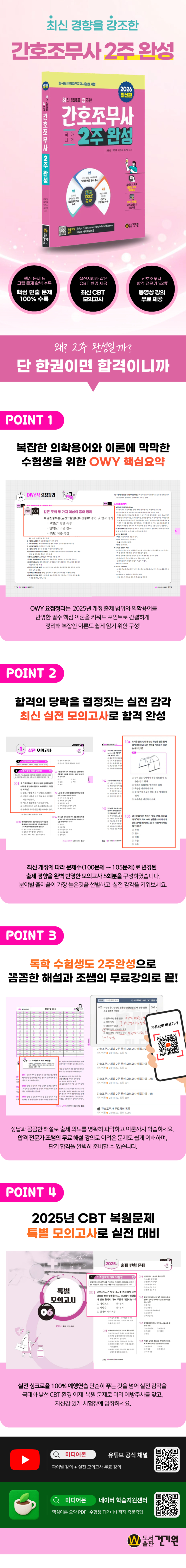 ³Ý°, °ú¸ñº° ¿¹»ó¹®Á¦¸¦ ÅëÇØ Çʱâ½ÃÇèÀÇ ¸¶¹«¸®¿Í ½ÇÀü °¨°¢À» ÀÍÈú ¼ö ÀÖµµ·Ï ½ÇÀü ½ÃÇè°ú °°Àº ½ÇÀü ¸ðÀǰí»ç¸¦ 5ȸ ¼ö·ÏÇÏ¿´°í, Ãß°¡ÀûÀ¸·Î 2025³âµµ °£È£Á¶¹«»ç ÃâÁ¦ ¹®Á¦¸¦ º¯ÇüÇÏ¿© Ưº° ¸ðÀǰí»ç·Î ¼ö·ÏÇÏ¿© ¾î¶² À¯ÇüÀÇ ½ÃÇè ¹®Á¦µµ ´ëºñÇÒ ¼ö ÀÖ°Ô ÇÏ¿´½À´Ï´Ù.