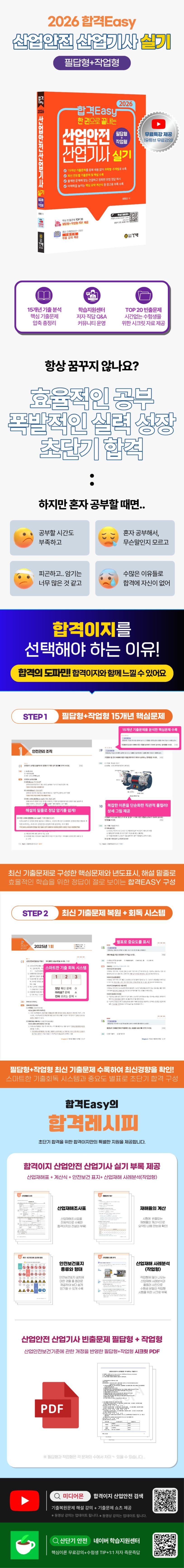 ÃâÆÇ»ç ¼Æòº» ¼öÇè¼´Â »ê¾÷¾ÈÀü»ê¾÷±â»ç ½Ç±â½ÃÇèÀ» °¡Àå È¿À²ÀûÀ¸·Î ÁغñÇÒ ¼ö ÀÖµµ·Ï ±¸¼ºµÈ ´Ü±â ÇÕ°Ý¿ë ±³ÀçÀÔ´Ï´Ù. ¾à 15³â°£ÀÇ ¿¬µµº° ±âÃâ¹®Á¦¸¦ °ú¸ñº°¡¤ÁÖÁ¦º°·Î ü°èÀûÀ¸·Î Á¤¸®ÇÏ¿©, ÇнÀÀÚ°¡ ºÒÇÊ¿äÇÑ ¹Ýº¹ ÇнÀ ¾øÀÌ Çٽɸ¸ ºü¸£°Ô ÀÌÇØÇÒ ¼ö ÀÖµµ·Ï ÆíÁýÇÏ¿´½À´Ï´Ù. ¹Ýº¹ ÃâÁ¦µÇ´Â ¹®Á¦´Â Çϳª·Î ÅëÇÕÇϰí ÃâÁ¦ ¿¬µµ¸¦ ÇÔ²² Á¦½ÃÇÏ¿©, ¹Ýµå½Ã ÀÍÇô¾ß ÇÒ ÇÙ½É ¹®Á¦¸¦ ÇÑ´«¿¡ ÆÄ¾ÇÇÒ ¼ö ÀÖ½À´Ï´Ù. ±×¸®°í ÃÖ±Ù ÃâÁ¦ °æÇâÀ» ÆÄ¾ÇÇϱâ À§ÇØ 2023³âºÎÅÍ 2025³â±îÁöÀÇ ±âÃâ¹®Á¦¸¦ ¿¬µµº°·Î ¼ö·ÏÇÏ¿´°í, ¹®Á¦¸¶´Ù Á߿䵵¸¦ Ç¥½ÃÇÏ¿© ÇнÀÀÇ ¿ì¼±¼øÀ§¸¦ ¸íÈ®È÷ ÇÏ¿´½À´Ï´Ù.