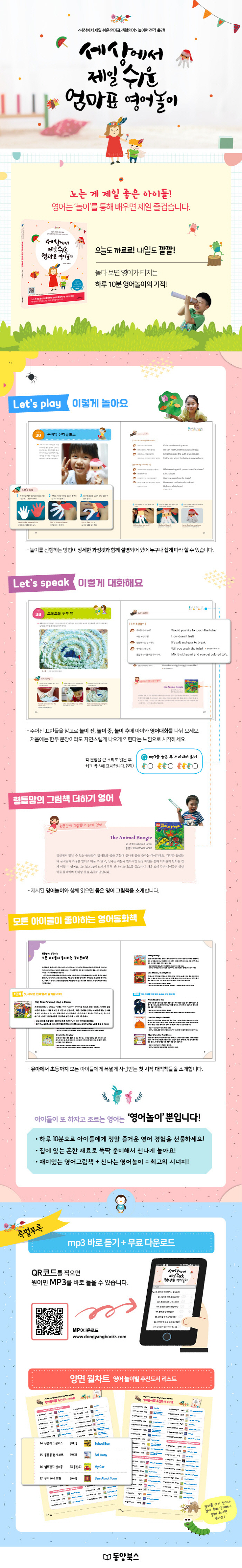 ³ë´Â °Ô Á¦ÀÏ ÁÁÀº ¾ÆÀ̵é! ¿µ¾î´Â ¡®³îÀÌ¡¯¸¦ ÅëÇØ ¹è¿ì¸é Á¦ÀÏ Áñ°Ì½À´Ï´Ù! ¾ÆÀ̵鿡°Ô Á¤¸» Áñ°Å¿î ¿µ¾î °æÇèÀ» ¼±¹°Çϼ¼¿ä. ÇÏ·ç 10ºÐÀÌ¸é ¾ÆÀ̶û ½Å³ª°Ô ³î ¼ö ÀÖ´Â ¿µ¾î³îÀÌ 80°¡Áö¸¦ ¼Ò°³µå¸³´Ï´Ù. ÀÏ»ó³îÀÌ, °èÀý&±â³äÀÏ ³îÀÌ, ÇнÀ³îÀÌ, µ¿¿ä³îÀÌ&Ã¥³îÀÌ, ¾ËÆÄºª&ÆÄ´Ð½º ³îÀÌ µî ÁÖÁ¦º°·Î ½Å³ª´Â ¿µ¾î³îÀ̵éÀ» Áñ°Ü º¸¼¼¿ä. ³îÀÌ¿µ¾î´Â ½±°í ¹Ýº¹ÀûÀΠǥÇöµéÀÌ ¸¹¾Æ, ¿µ¾î ¸»Çϱ⸦ ÀÍÈ÷±â¿¡ °¡Àå È¿°úÀûÀÔ´Ï´Ù. 80°³ ¿µ¾î³îÀ̺° 80±ÇÀÇ Ãßõµµ¼ ¸®½ºÆ®¸¦ ¿ùÂ÷Æ®·Î Á¦°øÇÏ¿©, ¿µ¾îµ¿ÈÃ¥¿¡¼ ¿µ¾î³îÀ̱îÁö ¾ö¸¶Ç¥ ¿µ¾î Ãʺ¸¸¾ÀÇ °í¹ÎÀ» Çѹ濡 ÇØ°áÇØ µå¸³´Ï´Ù. ¾ÆÀ̵éÀÌ ¶Ç ÇÏÀÚ°í Á¶¸£´Â ¿µ¾î´Â ¡®¿µ¾î³îÀÌ¡¯»ÓÀÔ´Ï´Ù!