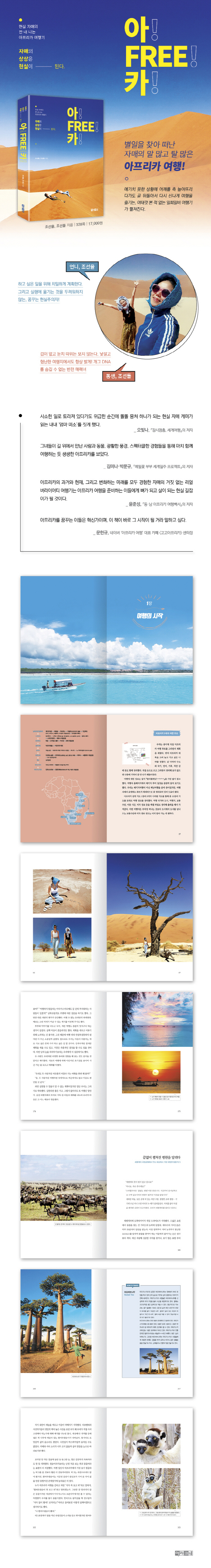 ÀڸŰ¡ º¸°í ´À³¢°í °æÇèÇÑ »ç°Ç°ú »ç°íµéÀº ¾ÆÇÁ¸®Ä« ¿©Çà¿¡ °ü½ÉÀÌ ¾ø´Â À̵éÀ̶ó ÇÒÁö¶óµµ ÃæºÐÇÑ Àç¹Ì¸¦ ´À³¥ ¼ö ÀÖÀ» ¸¸Å Èï¹Ì·Ó´Ù. ÀúÀÚµéÀº ¾î¶² »óȲ¿¡¼µµ ÇԺηΠÁ¶¾ðÀ» Çϰųª Çã¼¼·Î °¡µæÇÑ ±³ÈÆ µûÀ§´Â ¸»ÇÏÁö ¾Ê´Â´Ù. ¾ïÁö·Î ²Ù¸çÁø µíÇÑ °¨µ¿ÀûÀÎ À̾߱⵵ ¾ø´Ù. ´Ù¸¸ ÀÖ´Â ±×´ë·Î º¸°í ´À³¤ ³»¿ëÀ» °¡°¨ ¾øÀÌ ÀüÇÑ´Ù. ¾ÆÇÁ¸®Ä« ÇöÁöÀεéÀÇ Àý¸ÁÀûÀÎ °¡³°ú ¾ÈŸ±î¿î Çö½ÇÀ» ±×´ë·Î Á÷½ÃÇÏ´Â ÇÑÆí, ¾Æ¸§´Ù¿î dz°æ°ú Á¤°Ü¿î »ç¶÷µé°úÀÇ ¸¸³²À» ¾î¶² ¸»·Î Á¤ÀÇ ³»¸®·Á ÇÏÁö ¾Ê°í ±×Àú ÇູÇÏ°Ô Áñ±â°í ÇÔ²² ¿ô´Â´Ù. ÀÌ ¼ÖÁ÷Çϰí Á÷¼³ÀûÀΠȹýÀº ¡º¾Æ! FREE! Ä«!¡»ÀÇ °¡Àå Å« ¸Å·ÂÀ̱⵵ ÇÏ´Ù.