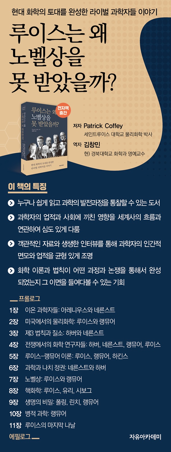 ÇÏÁö¸¸ 50³âÀÌ Áö³ª¸é ¾î¶² °úÇÐÀÚ°¡ ³ëº§»ó ´ë»óÀ¸·Î Áö¸íµÇ¾úÀ¸¸ç ¾î¶² °úÁ¤À» °ÅÃÄ ¼ö»óÀÚ·Î ¼±Á¤µÇ¾ú´ÂÁö¿¡ ´ëÇÑ °úÁ¤À» °ø°³Çϰí ÀÖ´Ù. ÀÌ Ã¥ÀÇ Áß½ÉÀι° ÁßÀÇ ÇÑ »ç¶÷ÀÎ ±æ¹öÆ® ·çÀ̽º´Â ÈÇÐ °áÇÕ, ¿¿ªÇÐ, µ¿À§¿ø¼Ò, ±¤ÈÇÐ µîÀÇ ºÐ¾ß¿¡¼ ¼±µµÀûÀÎ ¿¬±¸¸¦ ÇÏ¿© Çö´ë ÈÇÐÀÇ ÀÌ·ÐÀ» Á¤¸³ÇÑ ¹Ì±¹ÀÇ °úÇÐÀÚÀÌ´Ù. ·çÀ̽º´Â 1922³âºÎÅÍ 1946³â±îÁö ÃÑ 41¹øÀ̳ª ³ëº§ ÈÇлó È帷ΠÃßõµÇ¾úÁö¸¸ ³¡³» ³ëº§»óÀ» ¹ÞÁö ¸øÇÏ°í ½ÇÇè½Ç¿¡¼ ºñ±ØÀûÀ¸·Î »ýÀ» ¸¶°¨ÇÏ¿´´Ù. ·çÀ̽º°¡ ³ëº§»óÀ» ¹ÞÁö ¸øÇÑ Á¤È®ÇÑ ÀÌÀ¯´Â ¾Ë ¼ö ¾øÁö¸¸, ÀÌ Ã¥À» ÀÐÀ¸¸é ±× Àǹ®ÀÌ ¾î´À Á¤µµ ÇØ¼ÒµÉ ¼ö ÀÖÀ» °ÍÀÌ´Ù.