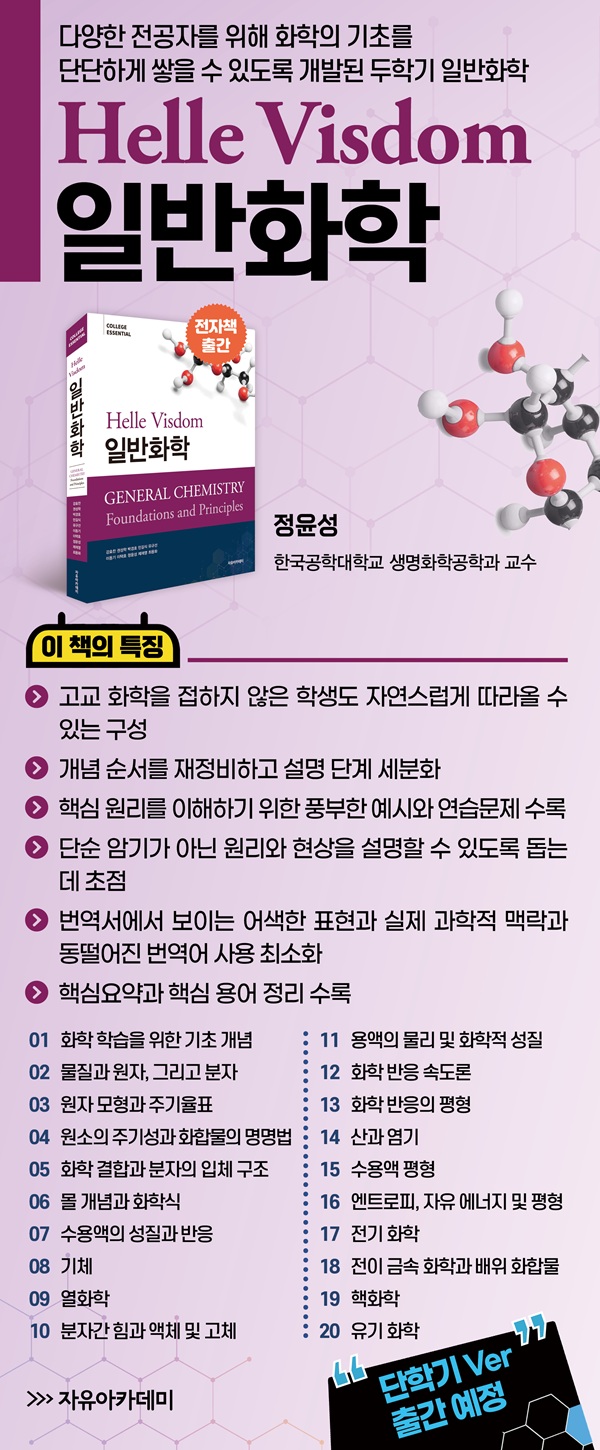 ÃÖ±Ù ´ëÇÐ ±³À° ÇöÀå¿¡¼ ´À³¤ Á¡ Áß Çϳª´Â, »ó´ç¼öÀÇ ½ÅÀÔ»ýÀÌ °íµîÇб³¿¡¼ ÈÇÐ¥°¡¤ÈÇÐ¥± °úÁ¤À» ÃæºÐÈ÷ °æÇèÇÏÁö ¸øÇÑ »óÅ·Π´ëÇÐÀÇ ÀϹÝÈÇÐÀ» Á¢ÇÑ´Ù´Â »ç½ÇÀÔ´Ï´Ù. ÀÌ·¯ÇÑ ¹è°æ Â÷ÀÌ´Â ÇнÀ ¼Óµµ¿Í ÀÌÇØµµ¿¡ Å« °£±ØÀ» ¸¸µé°ï ÇÕ´Ï´Ù. ±×·¡¼ ÀÌ Ã¥Àº °í±³ ÈÇÐÀ» Á¢ÇÏÁö ¾ÊÀº Çлýµµ ÀÚ¿¬½º·´°Ô µû¶ó¿Ã ¼ö ÀÖ´Â ±¸¼ºÀ» ÃÖ¿ì¼±À¸·Î »ï¾Ò½À´Ï´Ù. °³³äÀÇ ¼ø¼¸¦ ÀçÁ¤ºñÇϰí, ¼³¸íÀÇ ´Ü°è¸¦ ¼¼ºÐÈÇßÀ¸¸ç, ÇÙ½É ¿ø¸®¸¦ ÀÌÇØÇÏ´Â µ¥ ²À ÇÊ¿äÇÑ ¿¹½Ã¸¦ dzºÎÇÏ°Ô ´ã¾Ò½À´Ï´Ù. ´Ü¼ø ¾Ï±â°¡ ¾Æ´Ï¶ó ¿ø¸®¿Í Çö»óÀ» ½º½º·Î ¼³¸íÇÒ ¼ö ÀÖµµ·Ï µ½´Â µ¥ ÃÊÁ¡À» ¸ÂÃß¾ú½À´Ï´Ù.