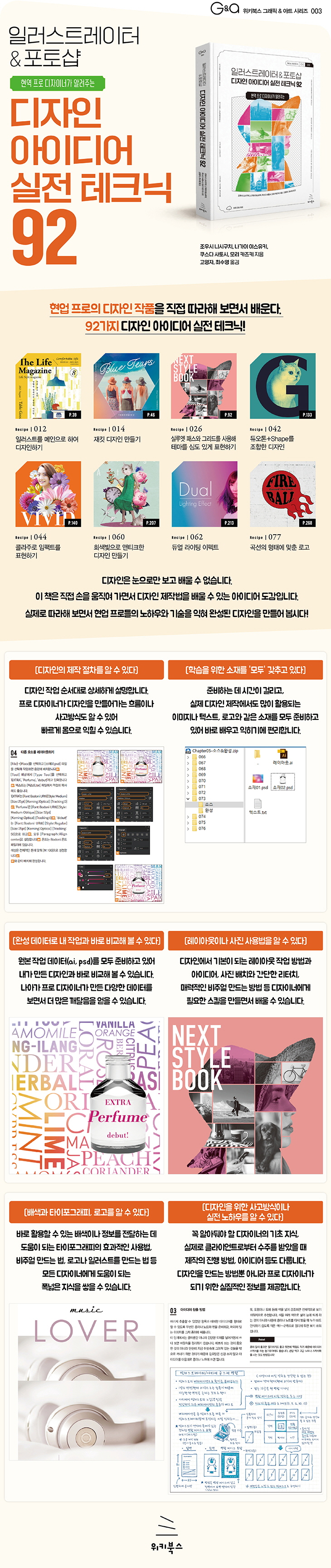 ÀÌ Ã¥¿¡¼´Â µðÀÚÀÎÇÒ ¶§ µµ¿òÀÌ µÇ´Â 92°³ÀÇ ¾ÆÀ̵ð¾î ·¹½ÃÇǸ¦ ÁغñÇß½À´Ï´Ù. ¿¹Á¦·Î Ȱ¿ëÇÒ ÆÄÀϵµ ¸ðµÎ ÁغñµÅ ÀÖ¾î¼ ¹Ù·Î µû¶ó ÇÒ ¼ö ÀÖ½À´Ï´Ù. ¶Ç, ¸¸µå´Â ¼ø¼»Ó ¾Æ´Ï¶ó µðÀÚÀ̳ʰ¡ ¾î¶² »ý°¢À¸·Î ¸¸µå´ÂÁö ¾Ë ¼ö ÀÖ°Ô ¼³¸íÇß½À´Ï´Ù. ´õºÒ¾î ¸ðµç ¿¹Á¦ÀÇ ¿øº» µ¥ÀÌÅͰ¡ ÁغñµÅ ÀÖ¾î¼ ¿Ï¼º ÆÄÀÏÀ» ½±°Ô ¸¸µé ¼ö ÀÖ½À´Ï´Ù.