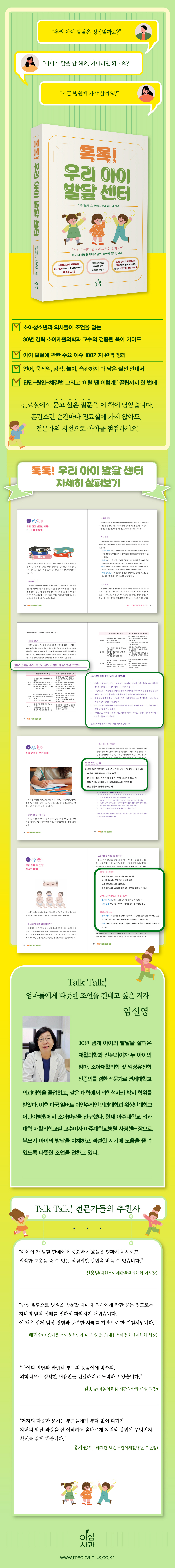ÀÌ Ã¥Àº ´ë¿îµ¿, ¼Ò¿îµ¿, ¾ð¾î, ÀÎÁö, »çȸ¼ºÀÇ 5´ë ¹ß´Þ ¿µ¿ªº° Ư¡°ú Á¡°Ë Æ÷ÀÎÆ®¸¦ Áß½ÉÀ¸·Î, Á¶»ê¾Æ Äɾî, ¹ß´Þ Àå¾ÖÀÇ Á¶±â ¹ß°ß, µðÁöÅÐ ¹Ìµð¾î ³ëÃâ, ±âÁú¿¡ µû¸¥ À°¾Æ¹ý µî ´Ù¾çÇÑ ½ÇÀü »ç·Ê¸¦ ¾Æ¿ì¸¥´Ù. ¡®ÇÑÂÊ ¼Õ¸¸ ¾²´Â ¾ÆÀÌ¡¯, ¡®¸»À» µû¶ó ÇÏÁö ¾Ê´Â ¾ÆÀÌ¡¯, ¡®WÀÚ ¾É±âÀÇ ¿ÀÇØ¿Í Áø½Ç¡¯ µî ºÎ¸ð°¡ ÀÚÁÖ ¹¯´Â °í¹ÎÀ» 100°³ÀÇ Å°¿öµå·Î Á¤¸®ÇØ, ÇÊ¿äÇÑ ³»¿ëÀ» ½±°Ô ã°í ½ÇõÇÒ ¼ö ÀÖµµ·Ï ±¸¼ºÇß´Ù. ¿µÀ¯¾Æ °Ç°°ËÁø Ç׸ñÀÎ K-DST ¹ß´Þ °Ë»ç, ¾Æµ¿¿ëǰ ¾ÈÀü °¡À̵å, ÀÓ»êºÎ¸¦ À§ÇÑ ¿±»ê ¼·Ãë Á¤º¸±îÁö ´ã°Ü ÀÖ¾î ¾ÆÀÌ ¹ß´ÞÀÇ Àü »ý¾Ö¸¦ Æø³Ð°Ô ´Ù·é´Ù.