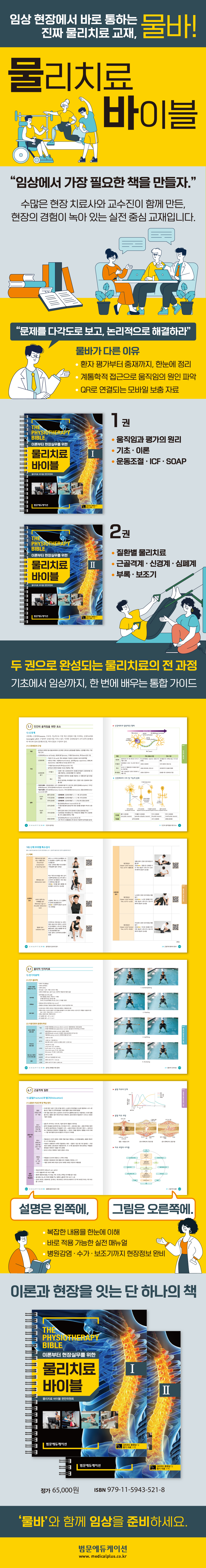 ÀÓ»ó¿¡¼ È¿°úÀûÀÎ ¹°¸®Ä¡·á¸¦ ¼öÇàÇϱâ À§ÇØ ¹Ýµå½Ã ¾Ë¾Æ¾ß ÇÒ ÇÙ½É À̷аú ½ÇÁ¦ Àû¿ë¹ýÀ» ÃѸÁ¶óÇÑ ½Ç¿ë °¡À̵å. ¹°¸®Ä¡·áÀÇ °³³äºÎÅÍ Àΰ£ ¿òÁ÷ÀÓÀÇ ¿ø¸®, °èÅ뺰 Æò°¡ ¹× ÁßÀç¹ý±îÁö Ä¡·á ÇöÀå¿¡¼ Áï½Ã Ȱ¿ë °¡´ÉÇÑ Áö½ÄÀ» ü°èÀûÀ¸·Î Á¤¸®Çß´Ù. ȯÀÚ ¸é´ã, SOAP ¹× ICF ¹®¼ ÀÛ¼º, Ç¥ÁØÈµÈ °Ë»ç µµ±¸¿Í ±Ù°ñ°Ý°è¤ý½Å°æ°è¤ý½ÉÆó°è µî ´Ù¾çÇÑ È¯ÀÚ±º¿¡ ´ëÇÑ Æò°¡ ¹× ÁßÀç¹ýÀ» dzºÎÇÏ°Ô ´ã¾Æ³Â´Ù. ÀÌÇØ¸¦ µ½´Â µµÇØ¿Í ½ÇÀü Áöħ, ÃֽŠƮ·»µå¸¦ ¹Ý¿µÇÑ ±¸¼ºÀ¸·Î, ÀÓ»ó¿¡ ÀÔ¹®ÇÑ ÇлýÀº ¹°·Ð ½Ç¹«¿¡ °í¹ÎÀÌ ¸¹Àº Ä¡·á»ç¿¡°Ôµµ °·ÂÇÑ ÀλçÀÌÆ®¸¦ Á¦°øÇÑ´Ù.