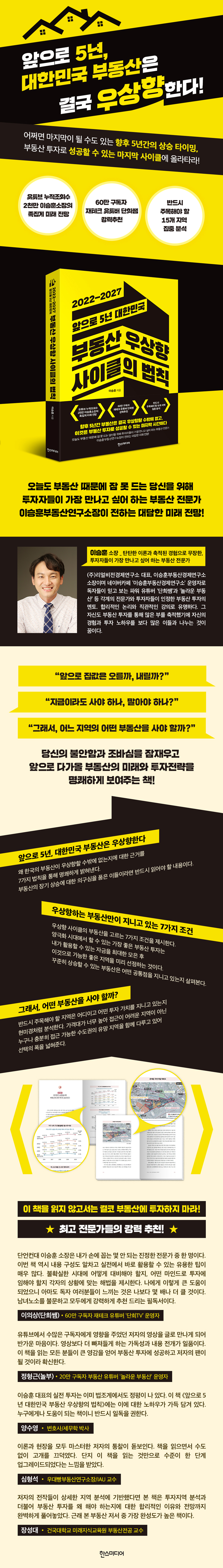 ÀüÀÛ ¡¶10³â ÈÄ, À̰÷Àº Á¦2ÀÇ °³²ÀÌ µÈ´Ù¡·(2019)¿Í ¡¶10³â ÈÄ, À̰÷Àº Á¦2ÀÇ ÆÇ±³°¡ µÈ´Ù¡·(2020)¿¡¼ ½Éµµ ±íÀº À̷аú ¸íÄèÇÑ ºÐ¼®À¸·Î µ¶ÀÚµéÀÇ ±ØÂùÀ» ¹ÞÀº ¹Ù ÀÖ´Â ±×´Â À̹ø Ã¥¿¡¼ ¾ÕÀ¸·Î 5³â µ¿¾È ´ëÇѹα¹ ºÎµ¿»êÀÌ ¿ì»óÇâ ±×·¡ÇÁ¸¦ ±×¸± ¼ö¹Û¿¡ ¾ø´Â ÀÌÀ¯¿Í ÁøÇà ¹æÇâ, ±×¸®°í À̸¦ Åä´ë·Î ÇÑ µðÅ×ÀÏÇÑ ÅõÀÚ Àü·«À» ²Ä²ÄÇÏ°Ô Â¤¾îÁØ´Ù. ƯÈ÷ ¼¿ïÀ» ºñ·ÔÇÑ ¼öµµ±ÇÀÇ 15°³ Áö¿ªÀ» Çö¹Ì°æÃ³·³ ºÐ¼®ÇÑ 3ºÎÀÇ ³»¿ëÀº ºÎµ¿»ê¿¡ °ü½É ÀÖ´Â µ¶ÀÚ¶ó¸é °áÄÚ ³õÃļ´Â ¾È µÉ ³»¿ëÀÌ´Ù.