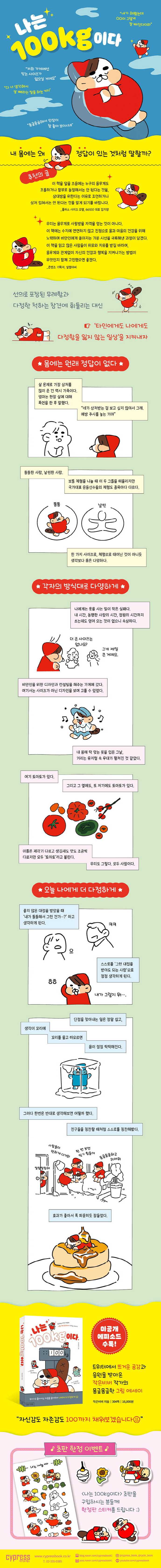 °úüÁßÀ̵ç ÀúüÁßÀ̵ç, ۰¡ ÀÛµç Å©µç ¼±ÀÇ·Î Æ÷ÀåµÈ ¹«·ÊÇÔ°ú ´ÙÁ¤ÇÑ Ã´ÇÏ´Â Á¶¾ð¿¡ ¿ÏÀüÈ÷ ÀÚÀ¯·Î¿î »ç¶÷Àº ¾ø´Ù. ¡´³ª´Â 100kgÀÌ´Ù¡µ´Â µû¶æÇÑ ±×¸²À» ±×¸®´Â ÀÛ°¡, ÀÛÀººñ¹ö°¡ ³²µé°ú´Â Á¶±Ý ´Ù¸¥ ¸ð½ÀÀÇ ¡®ºñ¸¸ÀΡ¯À¸·Î °ÞÀº ÀÏ»óÀ» ±×·Á³½ ¿¡¼¼ÀÌ´Ù. óÀ½ º» »ç¶÷ÀÌ ´ë¶ä ¡®»ìÀÌ ºüÁö´Â ´ÙÀÌ¾îÆ® ¹æ¹ý¡¯À» ¾Ë·ÁÁְųª °¡Á·°ú ÁÖº¯ »ç¶÷µéÀÌ ¡®´Ù ³Ê »ý°¢Çؼ »ì »©¶ó´Â ¸»À» ÇÏ´Â °ÅÁö¡¯¶ó´Â °ÆÁ¤ ¾î¸° Á¶¾ðÀ» ÇÒ ¶§ÀÇ °æÇè°ú »ý°¢À» ³ì¿©³½ ±×¸²ÀÌ 2021³â Æ®À§ÅÍ¿¡¼ ¶ß°Å¿î °ø°¨°ú ÀÀ¿øÀ» ¹Þ¾Ò°í, ÀÌÈÄ 24ÆíÀ» ¿¬ÀçÇÏ´Â µ¿¾È 3¸¸ ȸ ÀÌ»ó ¸®Æ®ÀÀÌ µÇ¸ç Å©³ªÅ« ÈÁ¦¸¦ ºÒ·¯ÀÏÀ¸Ä×´Ù.