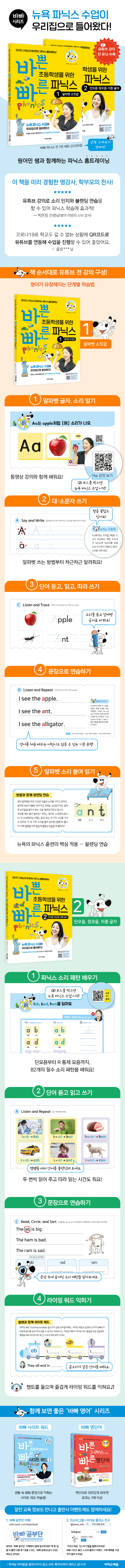 ´º¿åÀº ¹Ì±¹¿¡¼µµ ÆÄ´Ð½ººÎÅÍ Á¤È®ÇÑ ¹ßÀ½ ÇнÀÀ» ÅëÇØ ÀÇ»çÀü´ÞÀ» ¸íÈ®ÇÏ°Ô Àü´ÞÇÏ´Â ±³À°ÀÌ °¡Àå Àß ÀÌ·ç¾îÁö°í ÀÖ´Â Áö¿ªÀÔ´Ï´Ù. ÀÌ Ã¥Àº ´º¿å ÇöÁö ÃʵîÇб³ ¼±»ý´ÔÀÌ Á÷Á¢ °¡¸£Ä¡´Â ¹æ¹ýÀ¸·Î ÆÄ´Ð½º¸¦ Á¤È®ÇÏ°Ô ÀÍÈú ¼ö ÀÖµµ·Ï ±¸¼ºÇÑ Ã¥ÀÔ´Ï´Ù. Ã¥ ¼Ó QRÄڵ带 ÂïÀ¸¸é À¯Æ©ºê·Î ¿¬°áµÇ¾î Áý¿¡¼µµ ´º¿å ÃʵîÇб³ ÆÄ´Ð½º ¼ö¾÷À» µéÀ» ¼ö ÀÖ½À´Ï´Ù. ¶Ç ÆÄ´Ð½º ±ÔÄ¢ Áß¿¡¼µµ °¡Àå ¸¹ÀÌ »ç¿ëÇÏ´Â ±ÔÄ¢¿¡ ÁýÁßÇØ È¿À²ÀûÀ¸·Î °øºÎÇϵµ·Ï ±¸¼ºÇÑ Á¡µµ µ¸º¸ÀÔ´Ï´Ù.