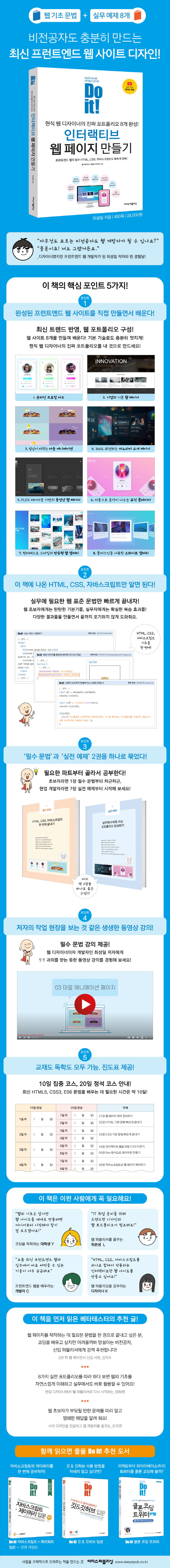 óÀ½ À¥ ÆÛºí¸®½ÌÀ» ¹è¿ï ¶§ ¡®³»°¡ Á¤¸» À¥ ÆäÀÌÁö¸¦ Á¦ÀÛÇÒ ¼ö ÀÖÀ»±î?¡¯ °ÆÁ¤Çß½À´Ï´Ù. ƯÈ÷ ¹®¹ýÀ» ¹è¿ï ¶§ °¡Àå ½ºÆ®·¹½º¹Þ¾Ò´ø °Í °°½À´Ï´Ù. Á¶±ÝÀÌ¶óµµ º¹ÀâÇÑ ¹®¹ýÀÌ ³ª¿À¸é ¹«ÀÛÁ¤ ¿Ü¿ü½À´Ï´Ù. Ȥ½Ã ÀÌ·± °æÇèÀ» ÇÑ »ç¶÷ÀÌ ÀÖ´Ù¸é ¡ºDo it! ÀÎÅÍ·¢Æ¼ºê À¥ ÆäÀÌÁö ¸¸µé±â¡»¸¦ ÃßõÇÏ°í ½Í½À´Ï´Ù. ÀÌ Ã¥Àº ÄÚµù ¿ÕÃʺ¸ÀÚµµ ÀÌÇØÇϱ⠽±°Ô ¼³¸íÇØ¼ ±âº»ºÎÅÍ ÅºÅºÇÏ°Ô ´ÙÁú ¼ö ÀÖ°í, Ã¥¿¡ ³ª¿Â ¿¹Á¦¸¦ Á÷Á¢ ¸¸µé´Ù º¸¸é ¹®¹ýÀ» ´õ È®½ÇÇÏ°Ô ÀÌÇØÇϰí Ȱ¿ëÇÒ ¼ö ÀÖÀ¸´Ï±î¿ä. HTML, CSS, ±×¸®°í ÀÚ¹Ù½ºÅ©¸³Æ®±îÁö À¥ ÆäÀÌÁö¸¦ ¸¸µé ¶§ ÇÊ¿äÇÑ ¹®¹ýÀ» ÇÑ ±ÇÀ¸·Î ³¡³»°í ½ÍÀº »ç¶÷, ÄÚµùÀ» ½ÃÀÛÇÏ°í ½ÍÁö¸¸ ¾î·Á¿ï±î ºÁ ¸Á¼³ÀÌ´Â ºñÀü°øÀÚ, Àú¿Í °°Àº ½ÅÀÔ ÆÛºí¸®¼Å¿¡°Ô °·Â ÃßõÇϴ åÀÔ´Ï´Ù.