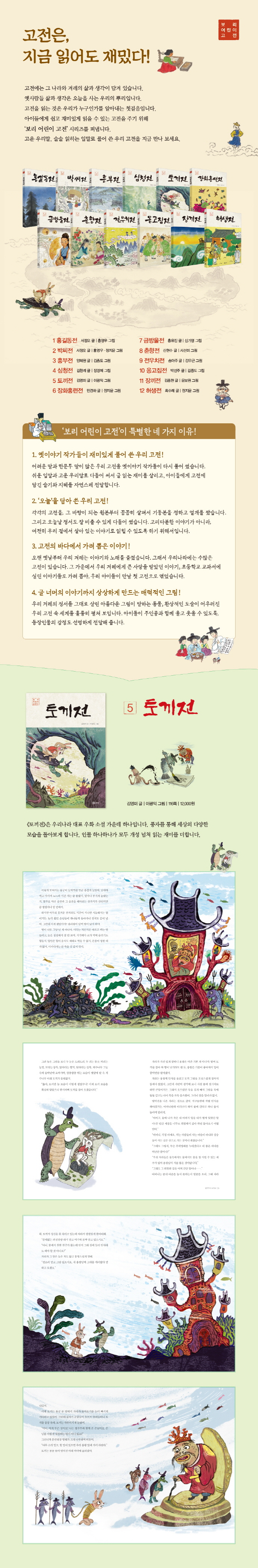 ¡¶Åä³¢Àü¡·Àº ÁöÀºÀÌ¿Í ÁöÀº ¶§°¡ ¶Ñ·ÇÇÏÁö ¾ÊÀº ¿¾À̾߱âÀÔ´Ï´Ù. ÀÔ¿¡¼ ÀÔÀ¸·Î ÀüÇØÁö´Ù Á¶¼± ½Ã´ë Èı⿡´Â ÆÇ¼Ò¸®¿Í ¼Ò¼³·Î ³Î¸® ÆÛÁö¸é¼ ¹é¼ºµé »çÀÌ¿¡ ¸¹Àº »ç¶ûÀ» ¹Þ¾Ò½À´Ï´Ù. ÀÚ¶óÀÇ ²Õ¿¡ ºüÁ® ¿ë±Ã¿¡ °¡ Á×À» °íºñ¸¦ ¸ÂÀº Åä³¢°¡ ²Ò¸¦ ³»¾î »ì¾Æ µ¹¾Æ¿Â´Ù´Â ÀÌ À̾߱â´Â µ¿¹°À» »ç¶÷¿¡ ºø´ë¾î ¾´ ¿ì¸®³ª¶ó ´ëÇ¥ ¿ìȼҼ³ÀÔ´Ï´Ù.¡¶Åä³¢Àü¡·Àº ´©±¸¸¦ À̾߱âÀÇ Á߽ɿ¡ µÎ´À³Ä¿¡ µû¶ó Àд ´À³¦ÀÌ ´Þ¶óÁý´Ï´Ù. ¿ë¿Õ²² Ãæ¼ºÀ» ´ÙÇÏ´Â ÀÚ¶ó¸¦ Áß½ÉÀ¸·Î º¸´Â °Í°ú, ±Ç·ÂÀÚÀÎ ¿ë¿Õ°ú ¿ë±Ã ½ÅÇϵéÀ» ³î·Á ÁÖ´Â Åä³¢¸¦ Áß½ÉÀ¸·Î º¸´Â °Í, ÀÌ µÎ °¡ÁöÀÔ´Ï´Ù. ÀÌ·¸µí µ¿¹°µéÀ» ÀÇÀÎÈÇØ¼ »ç¶÷ »ç´Â ¼¼»óÀÇ ¿©·¯ ¸ð½ÀÀ» ºñ²¿¾Æ ³ªÅ¸³»°Å³ª ²¿Áý¾î º¸°Ô ¸¸µå´Â °É ¡®Ç³ÀÚ¡¯¶ó°í ÇÕ´Ï´Ù. ¿ìȼҼ³Àº dzÀÚ¼ºÀÌ Â£¾î À̾߱⠼ӿ¡ ¿©·¯ ÀåÄ¡µéÀ» ¼û°Ü ³õ½À´Ï´Ù. ±×·¡¼ Àд À̵éÀÌ ¿ôÀ½À» ¸Ó±Ý±âµµ Çϰí, ¾àÀÚµéÀÌ °Þ´Â ±íÀº ¾ÆÇÄ¿¡ °ø°¨À» ´À³¢±âµµ ÇÕ´Ï´Ù.