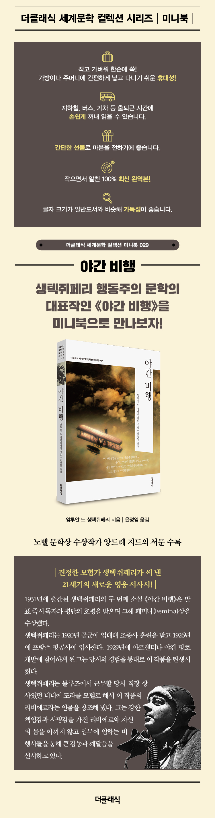 »ýÅØÁãÆä¸®´Â 1920³â °ø±º¿¡ ÀÔ´ëÇØ Á¶Á¾»ç ÈÆ·ÃÀ» ¹Þ°í 1926³â¿¡ ÇÁ¶û½º Ç×°ø»ç¿¡ ÀÔ»çÇÑ´Ù. 1929³â¿¡ ¾Æ¸£ÇîÆ¼³ª ¾ß°£ Ç×·Î °³¹ß¿¡ Âü¿©ÇÏ°Ô µÈ ±×´Â ´ç½ÃÀÇ °æÇèÀ» Åë´ë·Î ÀÌ ÀÛǰÀ» ź»ý½ÃÄ×´Ù. »ó¾÷ Ç×°øÀÌ Åº»ýÇÑ 1920³â´ë´Â ±³Åë°ú Åë½Å ¼ö´ÜÀÌ ¹ßÀüÇÏ°í µµ½ÃÈ¿Í °³¹ßÀÌ À̾îÁ³À¸¸ç, Àμâ¼ú°ú ¿µÈ¸¦ ÅëÇÑ À̹ÌÁöÀÇ º¸±ÞÀÌ ºñ¾àÀûÀ¸·Î È®´ëµÇ±â ½ÃÀÛÇß´Ù. ±×·¯ÇÑ ±â¼úÀÇ ¹ß´ÞÀº °³ÀÎÀÇ Áö°¢À» º¯È½ÃÄ×°í, ¹®¸íÀº Çö´ëȸ¦ ÇâÇØ ¿·Á ÀÖ¾ú´Ù. ÃÊ¿ùÀ̳ª ±Øº¹¿¡ ´ëÇÑ »ý°¢ÀÌ »îÀÇ ¸ðµç ºÐ¾ß¿¡¼ ½ÇüȵDZ⠽ÃÀÛÇÏ¸é¼ »çȸÀû Ãø¸é¿¡¼´Â ÀüÅëÀû °¡Ä¡µéÀÇ Àüº¹ÀÌ ÀϾ°í, °³ÀεéÀº ÇൿÀ» ÅëÇØ ÀÚ¾ÆÀÇ ±Øº¹À» ½ÃµµÇÏ°Ô µÇ¾ú´Ù. ¡¶¾ß°£ ºñÇà¡·¿¡¼ ÆÄºñ¾Þ°ú ¸®ºñ¿¡¸£¶ó´Â µÎ Àι°¿¡°Ô ³ªÅ¸³ª´Â ÀÚ±â ÃÊ¿ùÀ̳ª ±Øº¹ÀÇ ¸ð½ÀÀº ÀÌ·¯ÇÑ »çȸÀÇ º¯È¿Í °áÄÚ ¹«°üÇÏÁö ¾Ê´Ù. »ýÅØÁãÆä¸®´Â Åø·çÁî¿¡¼ ±Ù¹«ÇÒ ´ç½Ã Á÷Àå »ó»ç¿´´ø µðµð¿¡ µµ¶ó¸¦ ¸ðµ¨·Î ÇØ¼ ÀÌ ÀÛǰÀÇ ¸®ºñ¿¡¸£¶ó´Â Àι°À» âÁ¶ÇØ ³Â´Ù. ±×´Â °ÇÑ Ã¥ÀÓ°¨°ú »ç¸í°¨À» °¡Áø ¸®ºñ¿¡¸£¿Í ÀÚ½ÅÀÇ ¸öÀ» ¾Æ³¢Áö ¾Ê°í ÀÓ¹«¿¡ ÀÓÇÏ´Â ºñÇà»çµéÀ» ÅëÇØ Å« °¨µ¿°ú ±ú´ÞÀ½À» ¼±»çÇϰí ÀÖ´Ù.