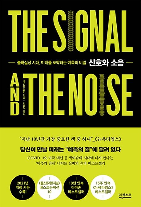 2012³â ¹Ì±¹ ´ë¼±¿¡¼ ¿À¹Ù¸¶°¡ ½Â¸®ÇÑ Á÷ÈÄ, Á¤Ä¡ ¿¹Ãø ºí·Î±× ÆÄÀÌºê¼Æ¼¿¡ÀÌÆ®FiveThirtyEight.com¸¦ ¿î¿µÇÏ´Â ³×ÀÌÆ® ½Ç¹öÀÇ ÈÁ¦ÀÛ ¡¶½ÅÈ£¿Í ¼ÒÀ½¡·Àº ÀÏ¾à º£½ºÆ®¼¿·¯·Î ¶°¿À¸¥´Ù. Åë°è¿Í È®·üÀÇ ¼¼°è¸¦ ÆÄ°íµé¾î ¹Ì·¡¿¹ÃøÀÇ ÆÐ·¯´ÙÀÓÀ» µÚÈçµç ÀÌ Ã¥¿¡¼, ³×ÀÌÆ® ½Ç¹ö´Â µ¥ÀÌÅͰ¡ Æø¹ßÀûÀ¸·Î ´Ã¾î³ª°í ¼ÒÀ½À¸·Î °¡µæÇÑ ÀÌ ¼¼»ó¿¡¼ ÁøÂ¥ ½ÅÈ£¸¦ °¡·Á³»´Â ¹æ¹ýÀ» ´Ù¾çÇÑ ºÐ¾ß¿¡¼ Ž»çÇÑ´Ù.