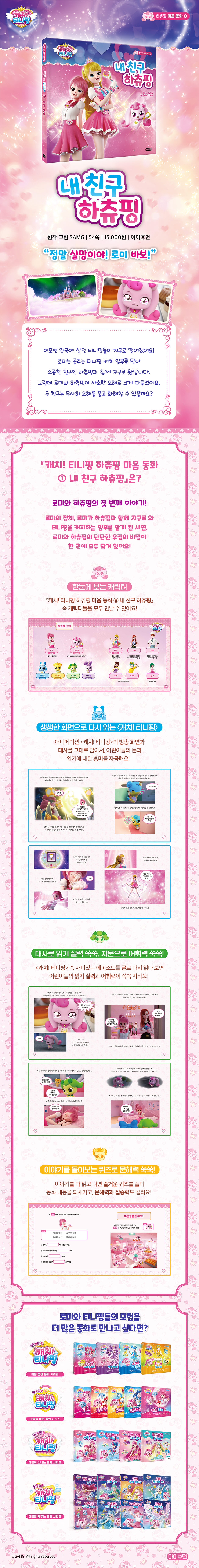 ¾î¸°À̵éÀÇ ¹Ù¸¥ ¼ºÀåÀ» µ½´Â ¾ÆÀÌÈÞ¸ÕÀº ¾î¸°À̵éÀÌ ÁÁ¾ÆÇÏ´Â ¡´Ä³Ä¡! Ƽ´ÏÇΡµ ½Ã¸®Á Àбâ¿Í ÇѱÛ, ¼ýÀÚ, ¿µ¾î ¾ËÆÄºª¿¡ Á¢¸ñÇØ ³îÀÌó·³ ¹è¿òÀ» Áñ±â´Â Ã¥µéÀ» Æì³»°í ÀÖ½À´Ï´Ù. ±×Áß ¡´Ä³Ä¡! Ƽ´ÏÇΡµ ¾Ö´Ï¸ÞÀ̼ÇÀ» À籸¼ºÇÑ µ¿ÈÃ¥ ½Ã¸®Áî´Â ÃÖ°íÀÇ Àα⸦ ÀÚ¶ûÇÏ´Â ½Ã¸®ÁîÀÔ´Ï´Ù.