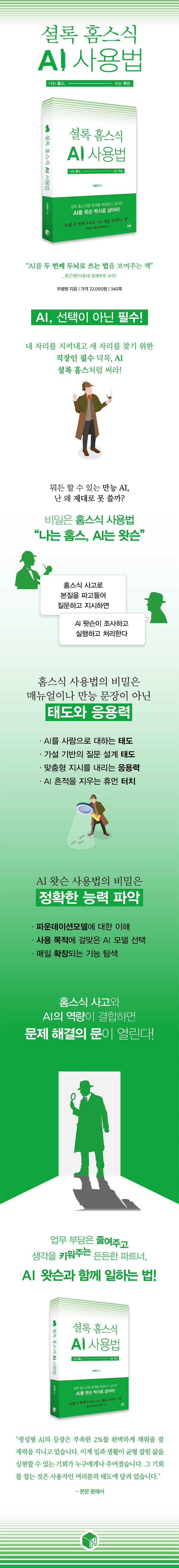 ÀúÀÚ´Â ¡º¼È·Ï Ȩ½º½Ä AI »ç¿ë¹ý¡»¿¡¼ AI ½Ã´ë¿¡ °É¸ÂÀº »õ·Î¿î »ç°í¹æ½ÄÀ¸·Î ¡®È¨½º-¿Ó½¼ ¸ðµ¨¡¯À» Á¦½ÃÇÕ´Ï´Ù. ¼È·Ïó·³ »ç°íÇϸç Áú¹®Çϰí, AI¸¦ µµ±¸°¡ ¾Æ´Ï¶ó »ç¶÷À¸·Î ´ëÇÏ´Â ¹æ½ÄÀÔ´Ï´Ù. ¡°¿Ö?¡±¶ó°í ²÷ÀÓ¾øÀÌ Áú¹®À» ´øÁö¸ç AI¿Í ÇÔ²² ¹®Á¦¸¦ ÇØ°áÇÏ´Â ³ë¿ÍÀÌ(Know-Why) ½Ã´ëÀÎ Áö±Ý, Ȩ½ºÃ³·³ º»ÁúÀ» ÆÄ°íµé¾î °¡¼³À» ¼³°èÇϴ ŵµ°¡ Áß¿äÇÕ´Ï´Ù.