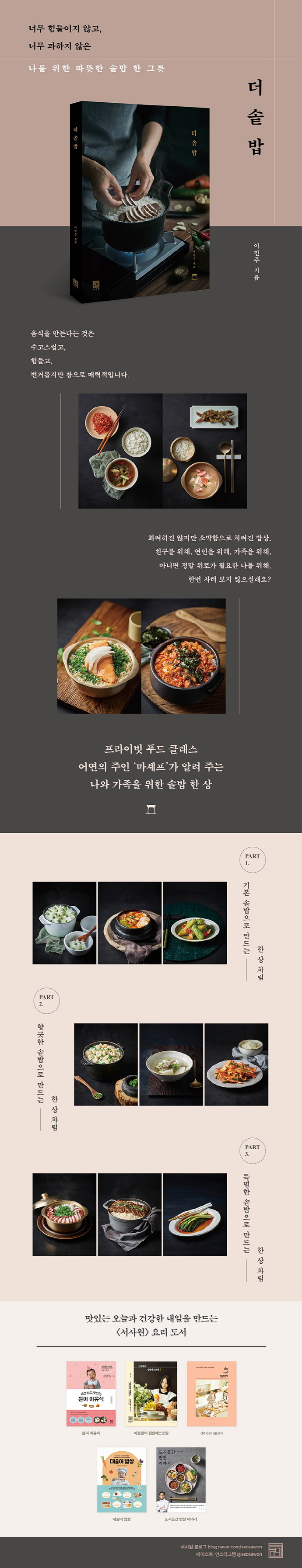 º»¹®¿¡´Â ¡®±âº» ¼Ü¹ä¡¯, ¡®Çâ±ßÇÑ ¼Ü¹ä¡¯, ¡®Æ¯º°ÇÑ ¼Ü¹ä¡¯À¸·Î ÆÄÆ®¸¦ ³ª´©¾ú´Ù. ±âº» ¼Ü¹äÀº ½ÒÀ» ºñ·ÔÇÑ °î·ù, ±¸È² ÀÛ¹°À» Ȱ¿ëÇÑ ·¹½ÃÇǰ¡ ´ã°Ü ÀÖ´Ù. ½ÒÀ» ºÒ¸®´Â ¼ø°£ºÎÅÍ ¼ÜÀ» ºÒ¿¡ ¿Ã¸®±â±îÁö, ¡®ÀÌ°Ô °ú¿¬ ¹äÀÌ µÉ±î?¡¯ ½ÍÁö¸¸ µû¶ó ÇÏ´Ù º¸¸é ¡®Á¤¸» µÇ´Â!¡¯ ¼ø°£À» ¸ÂÀÌÇÒ °ÍÀÌ´Ù. Çâ±ßÇÑ ¼Ü¹äÀº ¹äÀÇ ÇâÀ» ´õÇÏ´Â ½ÄÀÚÀç·Î ¸¸µå´Â ¼Ü¹äÀÌ´Ù. ¹ö¼¸, ³ÃÀÌ, ±¼°ú °°Àº ÇâÀÌ ÁÁÀº ½ÄÀç·á¸¦ ½ÒÀÇ Ç³¹Ì¿¡ ÀÔÇô ÇÑ ¹ø ¸ÃÀ¸¸é Àý´ë ÀØÀ» ¼ö ¾ø´Â ±ºÄ§ µµ´Â ¹äÀ» ¸¸µé ¼ö ÀÖ´Ù. Ưº°ÇÑ ¼Ü¹äÀº ¸» ±×´ë·Î Ưº°ÇÑ ³¯¿¡ ¸Ô±â ÁÁÀº Àç·á·Î ¸¸µå´Â ¼Ü¹äÀÌ´Ù. µµ¹Ì, ¹®¾î, ½ºÅ×ÀÌÅ© µî À°ÇذøÀ» ³Ñ³ªµé¸ç ´Ù¾çÇÑ Àç·á¸¦ ´Ù·ï¾ß ÇÏÁö¸¸ °Ì¸ÔÁö ¸»ÀÚ. Àç·á °í¸£´Â ¹æ¹ý, ¼ÕÁú, Á¶¸® °úÁ¤ µî ¸ðµç °ÍÀÌ ³î¶ó¿ï Á¤µµ·Î ½±°í °£´ÜÇÏ´Ù.