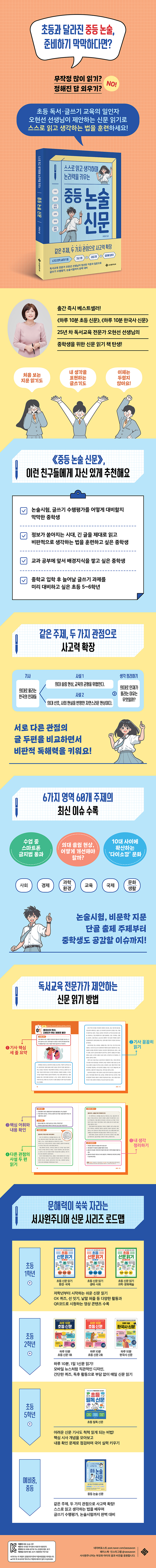 ÀÌ Ã¥Àº ÁßÇлý, ¶Ç´Â ÁßÇб³ ÀÔÇÐÀ» ¾ÕµÐ Ãʵî 5, 6Çг⿡°Ô ÃßõÇÕ´Ï´Ù. ÃÖ±Ù ¿ì¸® »çȸÀÇ ÁÖ¿ä À̽´¸¦ ´Ù·é ½Å¹® ±â»ç¸¦ Àаí ÁÖÁ¦¿¡ ´ëÇÑ ¼·Î ´Ù¸¥ °üÁ¡ÀÇ »ç¼³ µÎ ÆíÀ» ºñ±³ÇÏ¸ç ºñÆÇÀûÀ¸·Î ¹Ù¶óº¸µµ·Ï ±¸¼ºÇß½À´Ï´Ù. ±ÛÀÇ ÇÙ½ÉÀ» Á¦´ë·Î ÀÌÇØÇß´ÂÁö È®ÀÎÇÏ´Â Áú¹®ºÎÅÍ, ¾î¶² ºÎºÐÀ» ºñÆÇÀûÀ¸·Î »ý°¢ÇØ¾ß ÇÏ´ÂÁö ¤¾î ÁÖ´Â Áú¹®±îÁö ´Ü°èº°·Î ´ã¾Ò½À´Ï´Ù. Áú¹®¿¡ Â÷±ÙÂ÷±Ù ´äÇÏ´Ù º¸¸é, µ¶ÀÚ´Â ÀÚ½ÅÀÇ °¡Ä¡°ü°ú ÀǰßÀ» Á¤¸³ÇÏ´Â ¹ýÀ» ¹è¿ì°Ô µË´Ï´Ù. ¾î´À»õ óÀ½ º¸´Â ±Û ¾Õ¿¡¼µµ ´çȲÇÏÁö ¾Ê°í, ¼öÇàÆò°¡¿Í ³í¼ú½ÃÇè¿¡¼µµ »ý°¢À» Á¶¸® ÀÖ°Ô ±Û·Î ½á ³»·Á°¥ ¼ö ÀÖ°Ô µË´Ï´Ù.