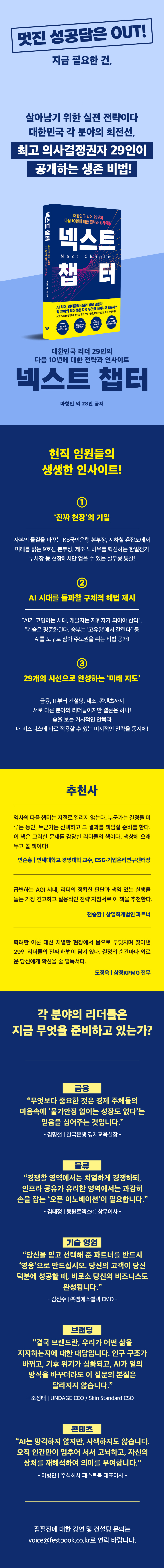 ¼Á¡°¡¿¡´Â È·ÁÇÑ ¼º°ø´ã°ú ¸Å²öÇÑ °æ¿µ ÀÌ·ÐÀÌ ³ÑÃij´Ù. ÇÏÁö¸¸ Ã¥À» µ¤°í Çö½Ç·Î µ¹¾Æ¿À´Â ¼ø°£, ¿ì¸®´Â ´Ù½Ã ¸·¸·ÇØÁø´Ù. AI°¡ Àΰ£ÀÇ »çÀ¯¸¦ ´ëüÇϰí, °ø±Þ¸ÁÀÌ ºØ±«Çϸç, Àα¸ Àýº®ÀÌ ´ÚÃÄ¿À´Â ÀÌ °Ýº¯ÀÇ ½Ã´ë¿¡ ¡°³»ÀÏ ¾ÆÄ§ ¿ì¸® Á¶Á÷Àº ¹«¾ùÀ» °áÁ¤ÇØ¾ß Çϴ°¡?¡±¶ó´Â Àý¹ÚÇÑ Áú¹®¿¡ ´äÇØÁִ åÀº µå¹°±â ¶§¹®ÀÌ´Ù. ¡º³Ø½ºÆ® éÅÍ¡»´Â ¹Ù·Î ÀÌ ÁöÁ¡¿¡¼ ź»ýÇß´Ù. ÀÌ Ã¥Àº ÀÚº»ÀÇ ¹°±æÀ» °ü¸®ÇÏ´Â ±ÝÀ¶ Àü¹®°¡ºÎÅÍ ±ÝÀ¶, ¹ý·ü, Á¦Á¶, °ø°ø, ÄÜÅÙÃ÷¿¡ À̸£±â±îÁö, ´ëÇѹα¹ °¢ ºÐ¾ßÀÇ ¸®´õ 29¸íÀÌ ÇöÀå¿¡¼ ±ð°í ´ÙµëÀº ³¯°ÍÀÇ »ýÁ¸ ±â·ÏÀÌ´Ù.