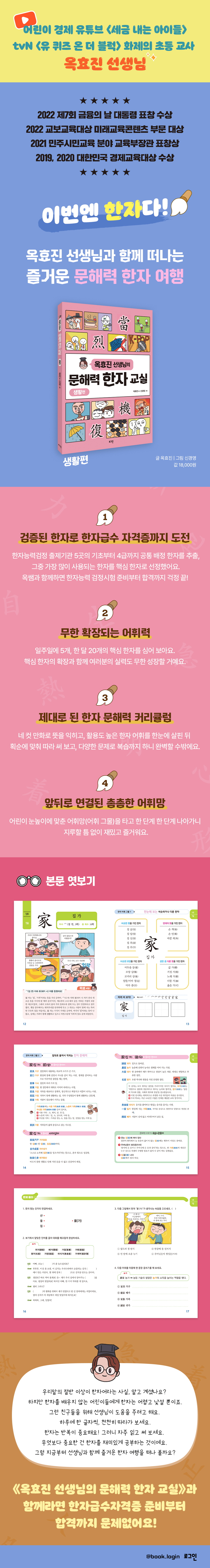 ÀÌ Ã¥ ¡¶¿ÁÈ¿Áø ¼±»ý´ÔÀÇ ¹®ÇØ·Â ÇÑÀÚ ±³½Ç¡·Àº ¸ÅÀÏ ÇÑ °³ÀÇ ÇÑÀÚ¸¦ °øºÎÇÏ´Â °úÁ¤¿¡¼ ÇÑÀÚ¿Í Ä£ÇØÁú ¼ö ÀÖ°Ô ¸¸µç ¡®Âü ½¬¿î ÇÑÀÚ ÇнÀ¼¡¯´Ù. ¾î¸°ÀÌ °æÁ¦ ºÐ¾ß º£½ºÆ®¼¿·¯ ¡¶¼¼±Ý ³»´Â ¾ÆÀ̵顷°ú °ú¸ñº° °³³ä ÇнÀ¼ ¡¶¿ÁÈ¿Áø ¼±»ý´ÔÀÇ °³³ä »çÀü ½Ã¸®Áî¡··Î ´ëÇѹα¹ ¸ðµç ¾î¸°À̵éÀÇ ¼±»ý´ÔÀ¸·Î ÀÚ¸®¸Å±èÇÑ ¿ÁÈ¿Áø ÀÛ°¡°¡ »õ·Ó°Ô ¼±º¸ÀÌ´Â ÇнÀ ±³¾ç ½Ã¸®ÁîÀ̱⵵ ÇÏ´Ù. ¡®»ç¶÷Æí¡¯°ú ¡®¼ýÀÚÆí¡¯ÀÇ Ãâ°£À» ½ÃÀÛÀ¸·Î ¡®ÀÚ¿¬Æí¡¯, ¡®»çȸÆí¡¯, ¡®±³¾çÆí¡¯, ¡®»ýȰÆí¡¯±îÁö À̾îÁú ÀÌ Ã¥À» ÅëÇØ ¿ì¸® ¾î¸°À̵éÀÌ ¸»°ú ±ÛÀ» Á» ´õ Àß ÀÌÇØÇϰí, ¼¼»ó º¸´Â ´«À» ´õ¿í ³ÐÈú ¼ö Àֱ⸦ ±â´ëÇÑ´Ù. ÇÙ½É ÄÛÄÛ! Àç¹Ì ¾¦¾¦! ¾îÈַ°ú ¹®ÇØ·ÂÀÌ µ¿½Ã¿¡ ³ô¾ÆÁö´Â Áñ°Å¿î ÇÑÀÚ °øºÎ.