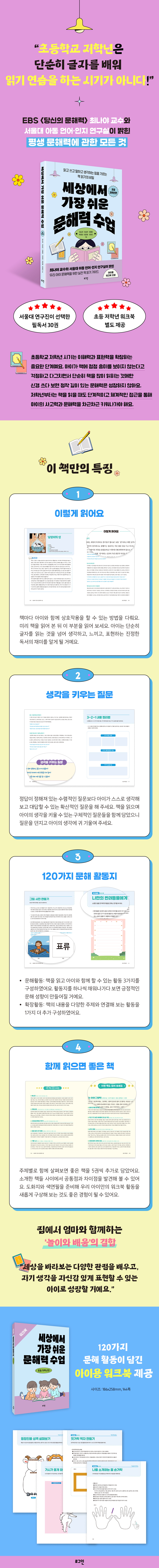 ¡º¼¼»ó¿¡¼ °¡Àå ½¬¿î ¹®ÇØ·Â ¼ö¾÷¡» ½Ã¸®ÁîÀÇ µÎ ¹øÂ° Ã¥ÀÎ ÀÌ Ã¥Àº ³îÀ̸¦ ³Ñ¾î º»°ÝÀûÀ¸·Î Çо÷°ú ¿¬°üµÇ´Â Ã¥ Àб⸦ ½ÃÀÛÇÑ ÃʵîÇб³ ÀúÇг⠾ÆÀ̸¦ µÐ ºÎ¸ð¿¡°Ô ¡®Á¦´ë·Î Ã¥ Àд ¹æ¹ý¡¯¿¡ ´ëÇØ ¾Ë·ÁÁØ´Ù. ¼¿ï´ëÇб³ ¾Æµ¿ ¾ð¾î¡¤ÀÎÁö ¿¬±¸½Ç¿¡¼ ¾ö¼±ÇÑ ÃʵîÇб³ 1ÇгâºÎÅÍ 3Çгâ±îÁö Çг⸶´Ù ²À Àоî¾ß ÇÒ µµ¼ 10±ÇÀ» Ȱ¿ëÇØ Áý¿¡¼µµ ´Ü°èÀûÀ̰í ü°èÀûÀ¸·Î ¾ÆÀÌÀÇ ¹®ÇØ·ÂÀ» Ű¿öÁÙ ¼ö ÀÖ°Ô ¾ÆÀ̸¦ À§ÇÑ 3°¡Áö ¹®ÇØ È°µ¿°ú 1°¡Áö È®ÀåȰµ¿À» Ãß°¡·Î ´ã¾Ò´Ù. ¾ÆÀ̰¡ Ã¥À» ¾î¶»°Ô Àд °ÍÀÌ ÁÁÀºÁö, ¾ÆÀÌ¿¡°Ô ¾î¶² Áú¹®À» ÇØ¾ß ÇÏ´ÂÁö, Ã¥À» ÀÐÀº ÈÄ ¾î¶² Ȱµ¿À» ÇÔ²²ÇÒ ¼ö ÀÖ´ÂÁö µî ºÎ¸ð¶ó¸é ±Ã±ÝÇØÇÏ´Â ¹®ÇØ·ÂÀÇ ¸ðµç °Ô ÀÌ Ã¥¿¡ ´ã°Ü ÀÖ´Ù.